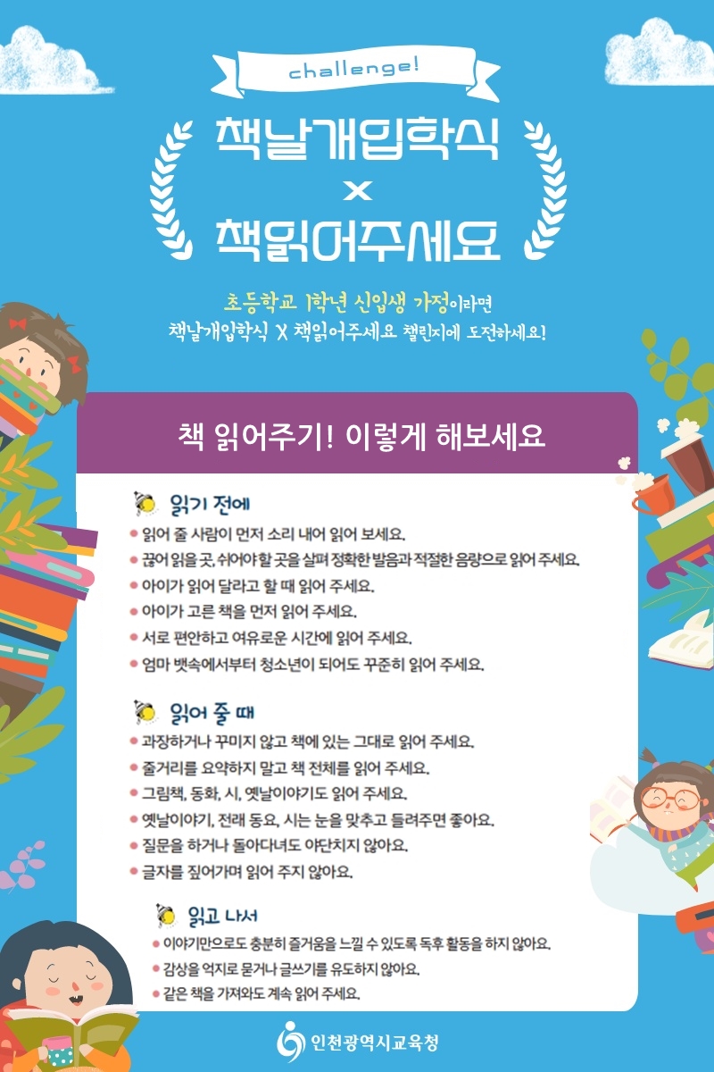 책읽어주기 이렇게 해보세요[학부모가이드북] 관리자 운영사례 0 2177 2020.10.05 19:21 2020.10.05 20:04 학부모를위한독서가이드북3차시안.pdf (4.9M) + 68 책날개입학식을 통해 선물받은 그림책을 가정에서, 학교에서 읽어주세요!학부모 독서가이드북을 다운 받으세요