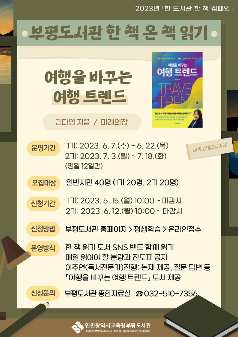 부평도서관 「한 책 온 책 읽기」 참여자 모집합니다. 많은 참여 바랍니다.