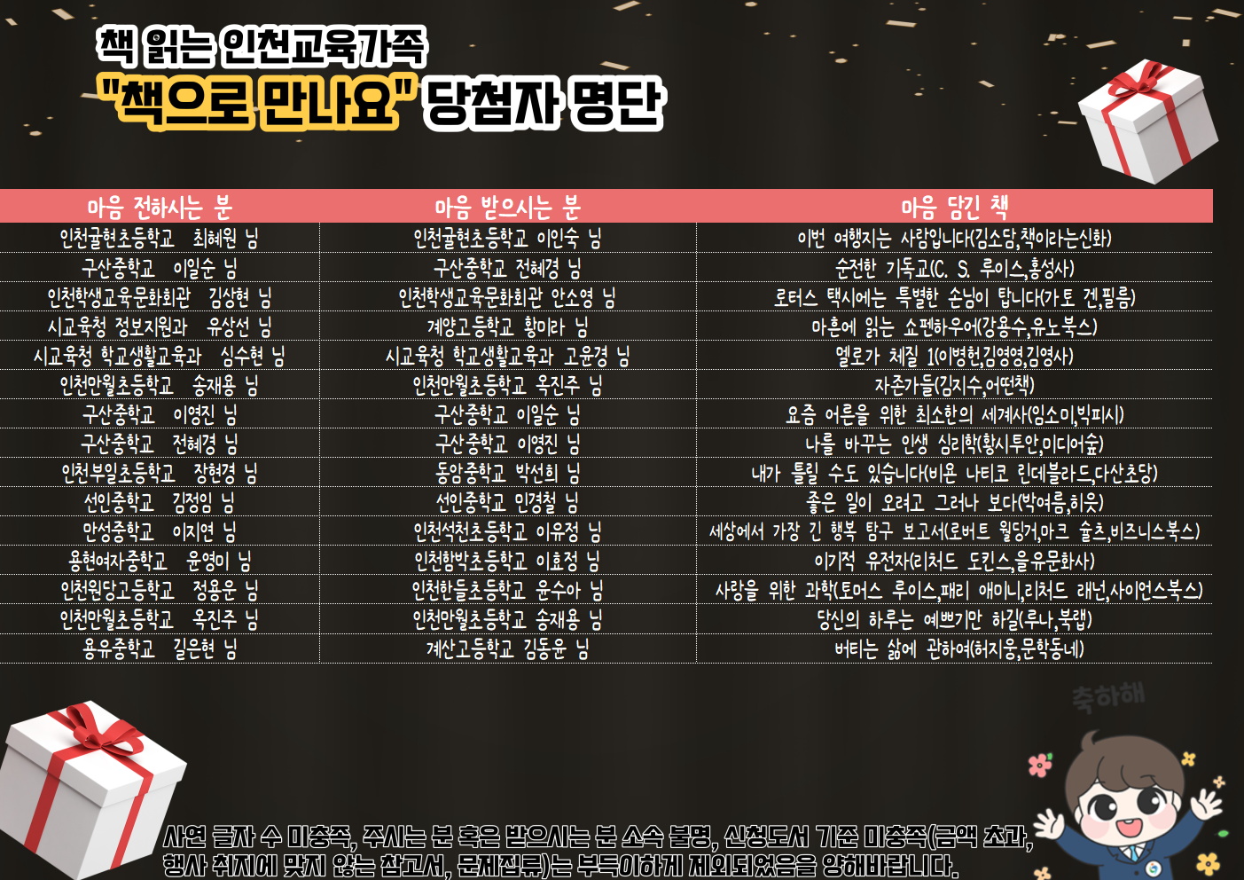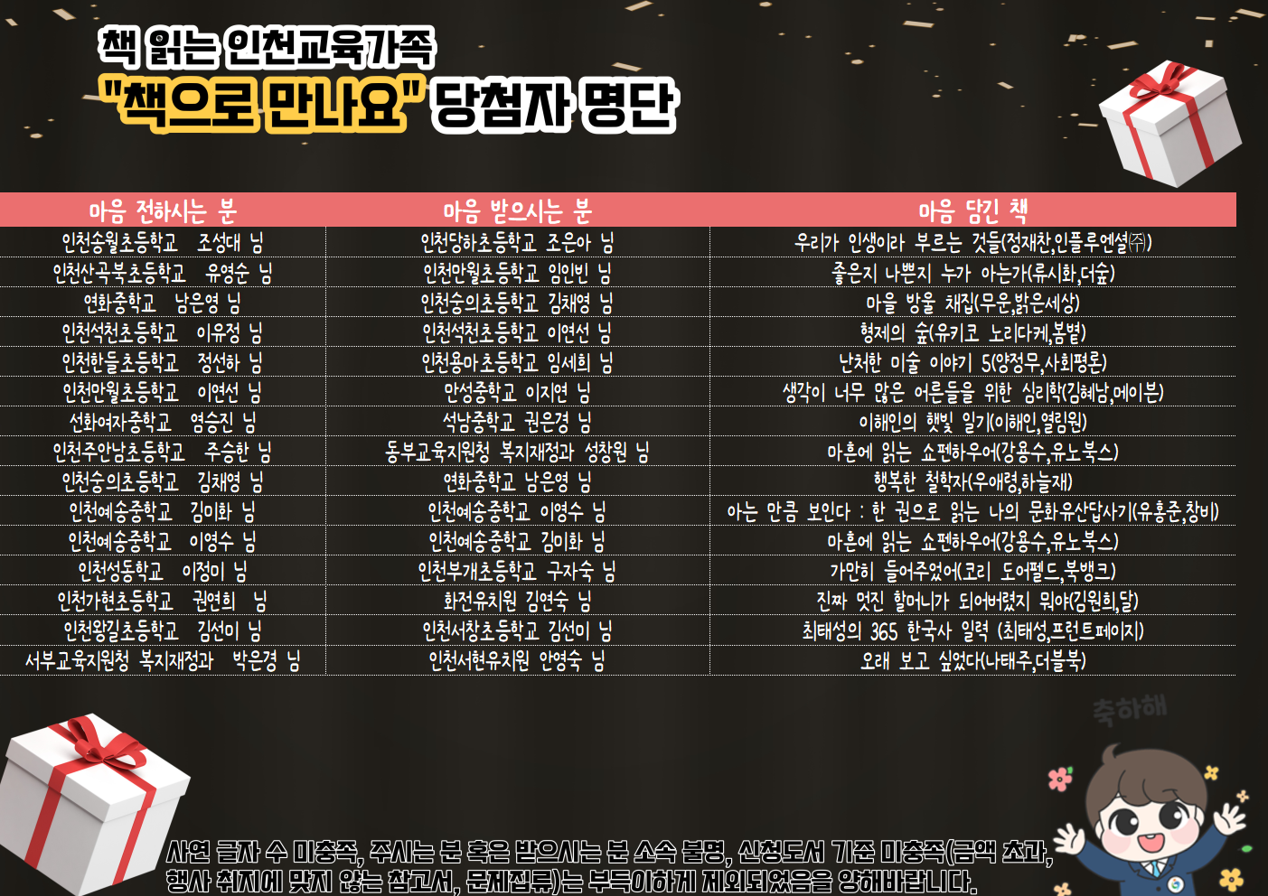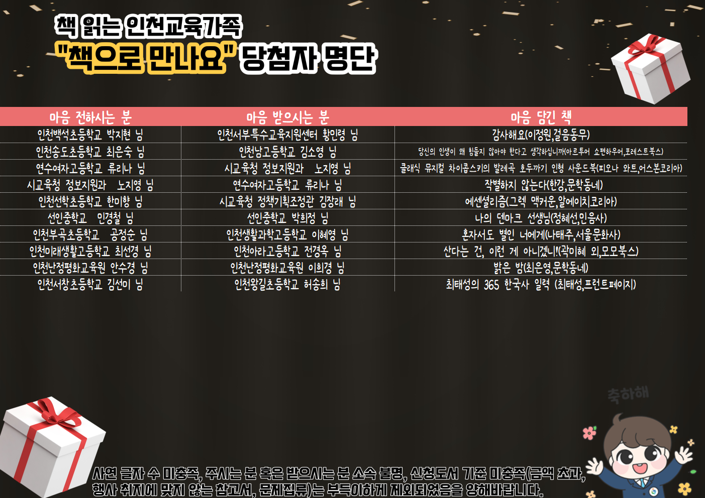 -  책 선물하고 싶은 동료: 인천왕길초등학교 허송희
