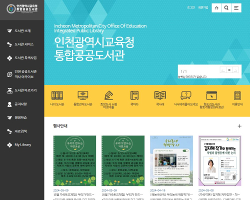 인천광역시교육청 소속 8개 공공도서관(북구, 중앙, 부평, 주안, 화도진, 서구, 계양, 연수) 및 평생학습관의 도서관리시스템을 하나로 통합하여,