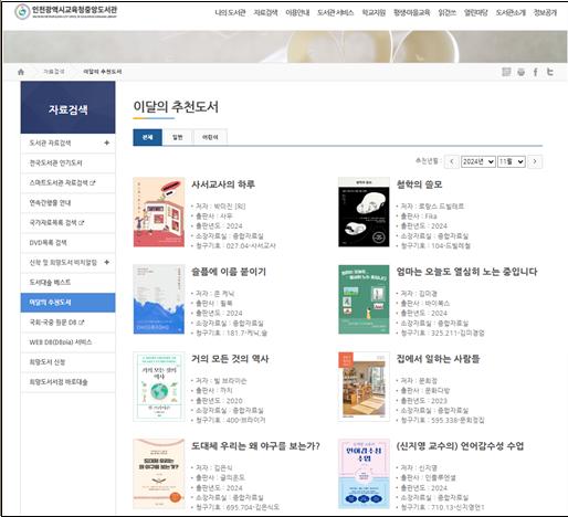 인천광역시교육청중앙도서관>자료검색 > 이달의 추천도서