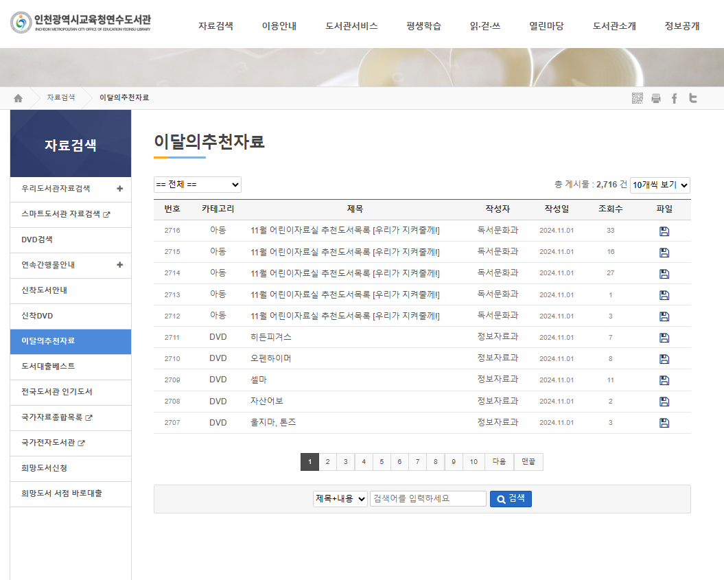 인천광역시교육청연수도서관 > 자료검색 > 이달의 추천도서