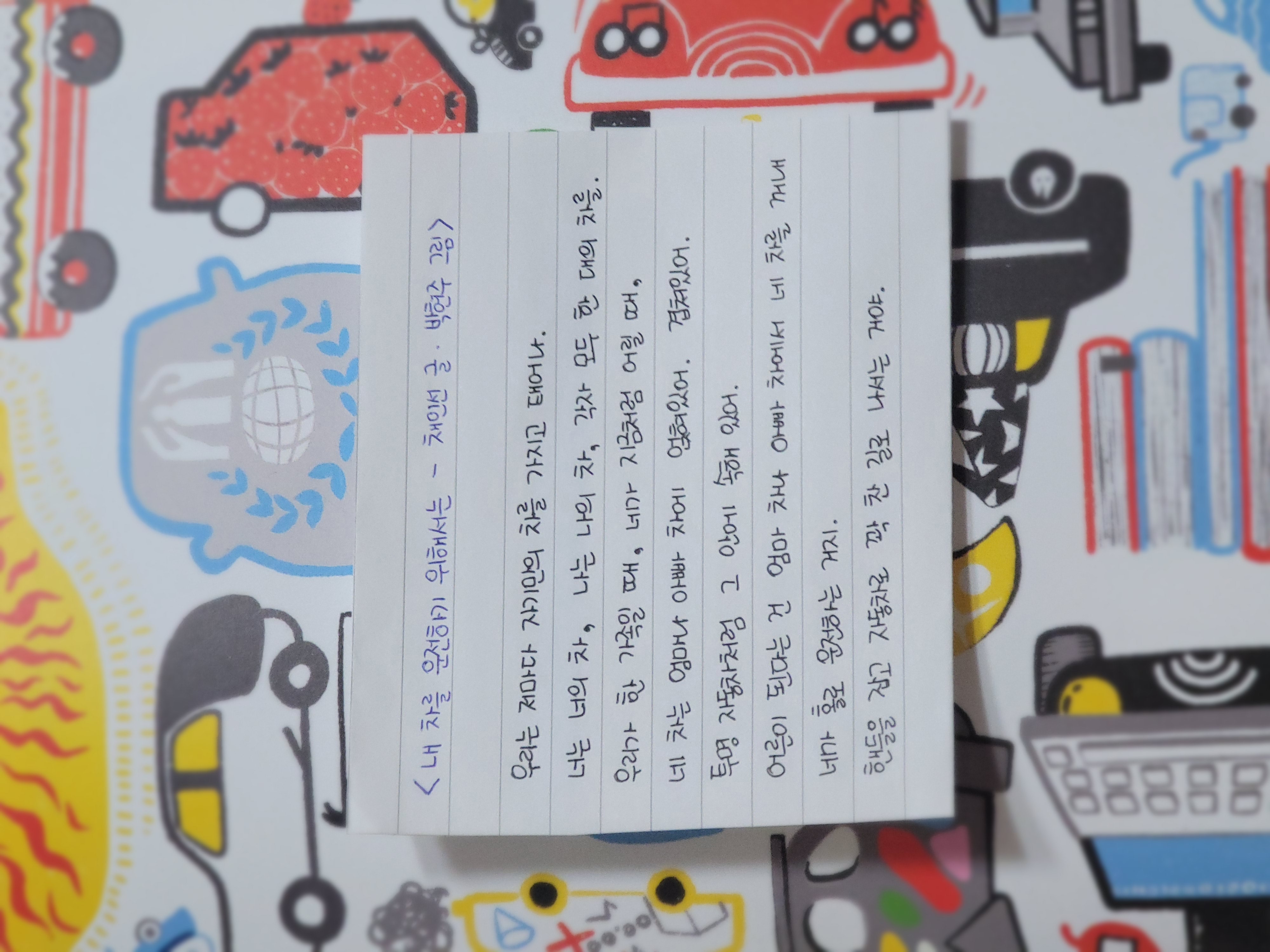 '내 차를 운전하기 위해서는' 그림책의 일부분 필사입니다.
