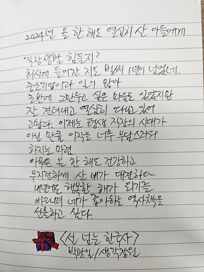 누구나 직장생활이 쉬운 건 아니지만, 직장생활 초년생이라 힘들었을 아들을 칭찬하고 응원하며 이 편지를 씁니다.