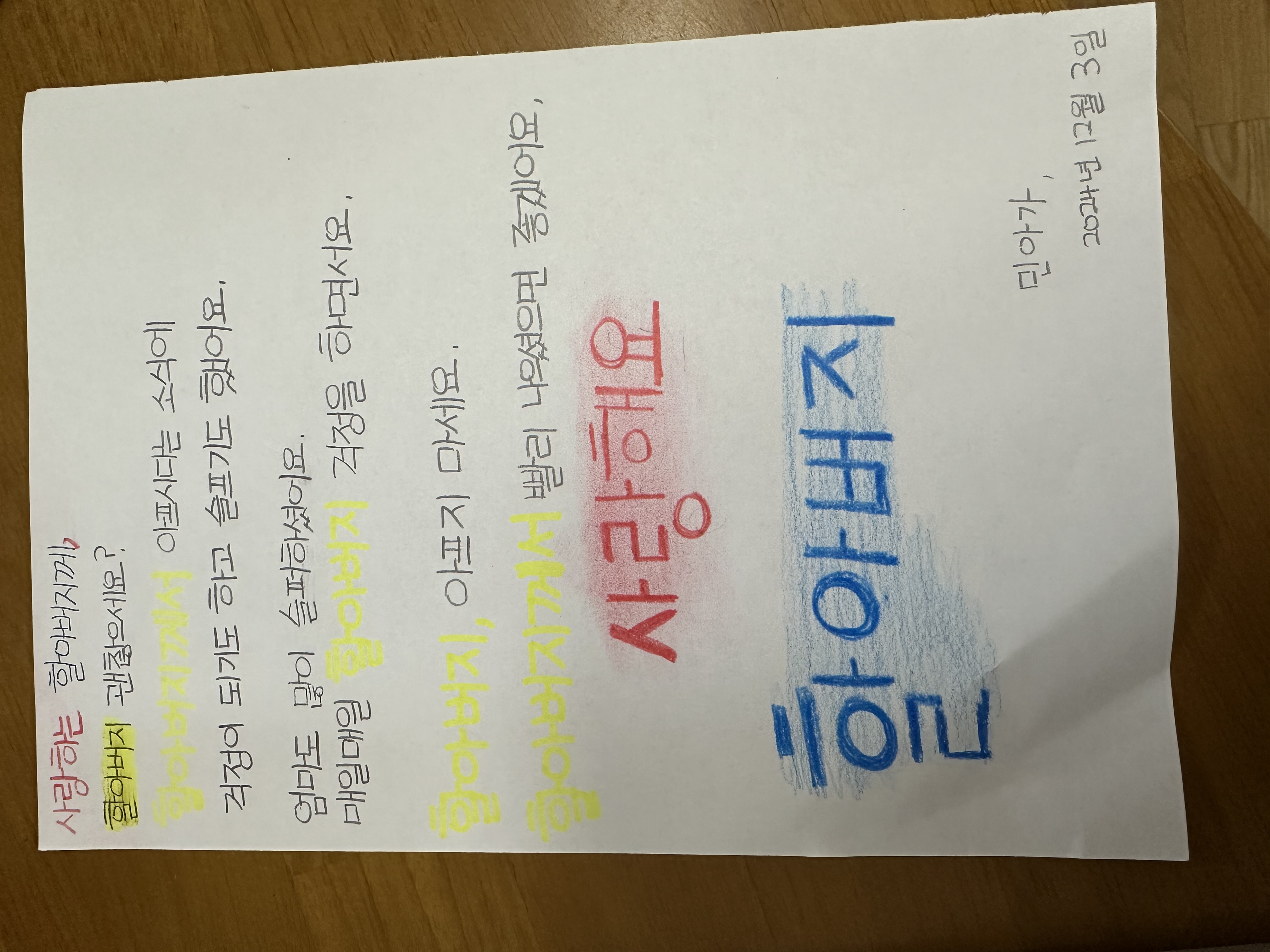 아프다는 소식을 접하고 편지를 써보았습니다.