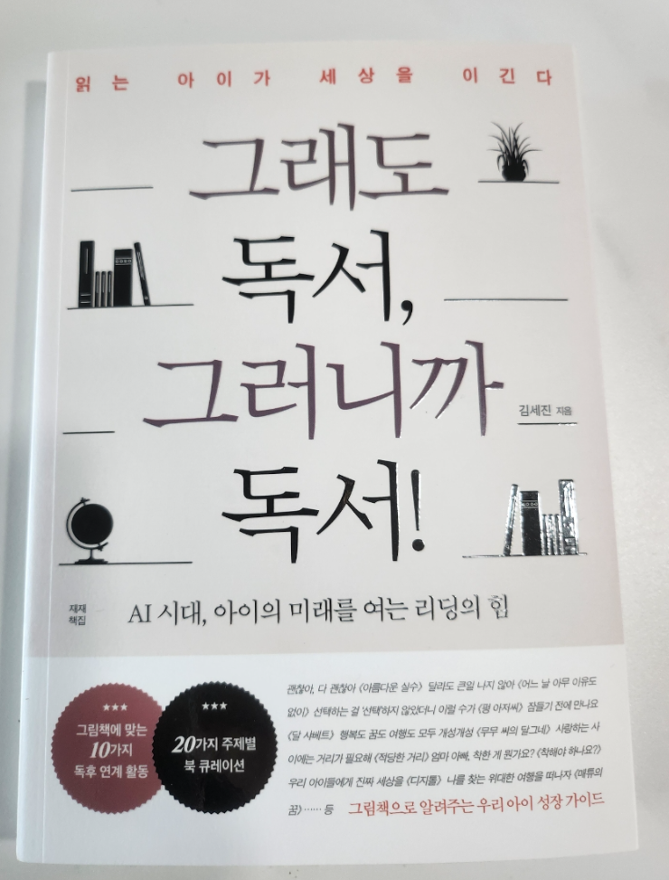 이 책은 빠르게 변화하는 AI 시대에 아이에게 올바른 독서, 읽는 힘을 알려주는 책인거 같다. 다양한 환경 속에서 그림책을 통해 질문하는 아이, 생각하는 아이, 호기심이 있는 아이로 성장하는데 도움이 되며 부모가 아이와 함께 그림책을 읽을 때 길라잡이가 되는 도서이다. 추천하는 그림책을 통해 아이와 소통하는 시간이 되었으면 한다.