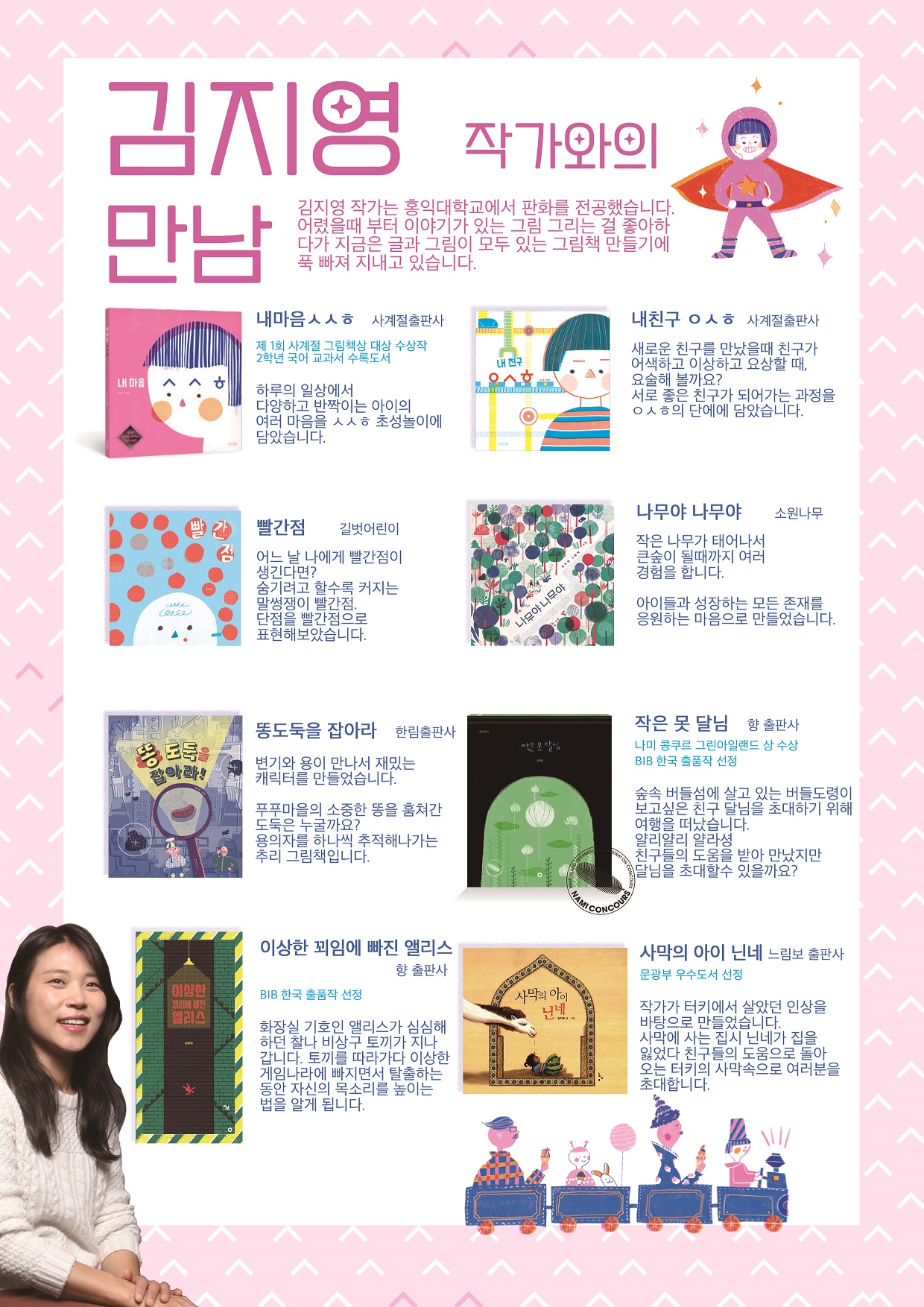 · 참여자 중 작가에 대한 사전 질문을 작성하여 채택된 분께 김지영 작가 그림책 증정 예정