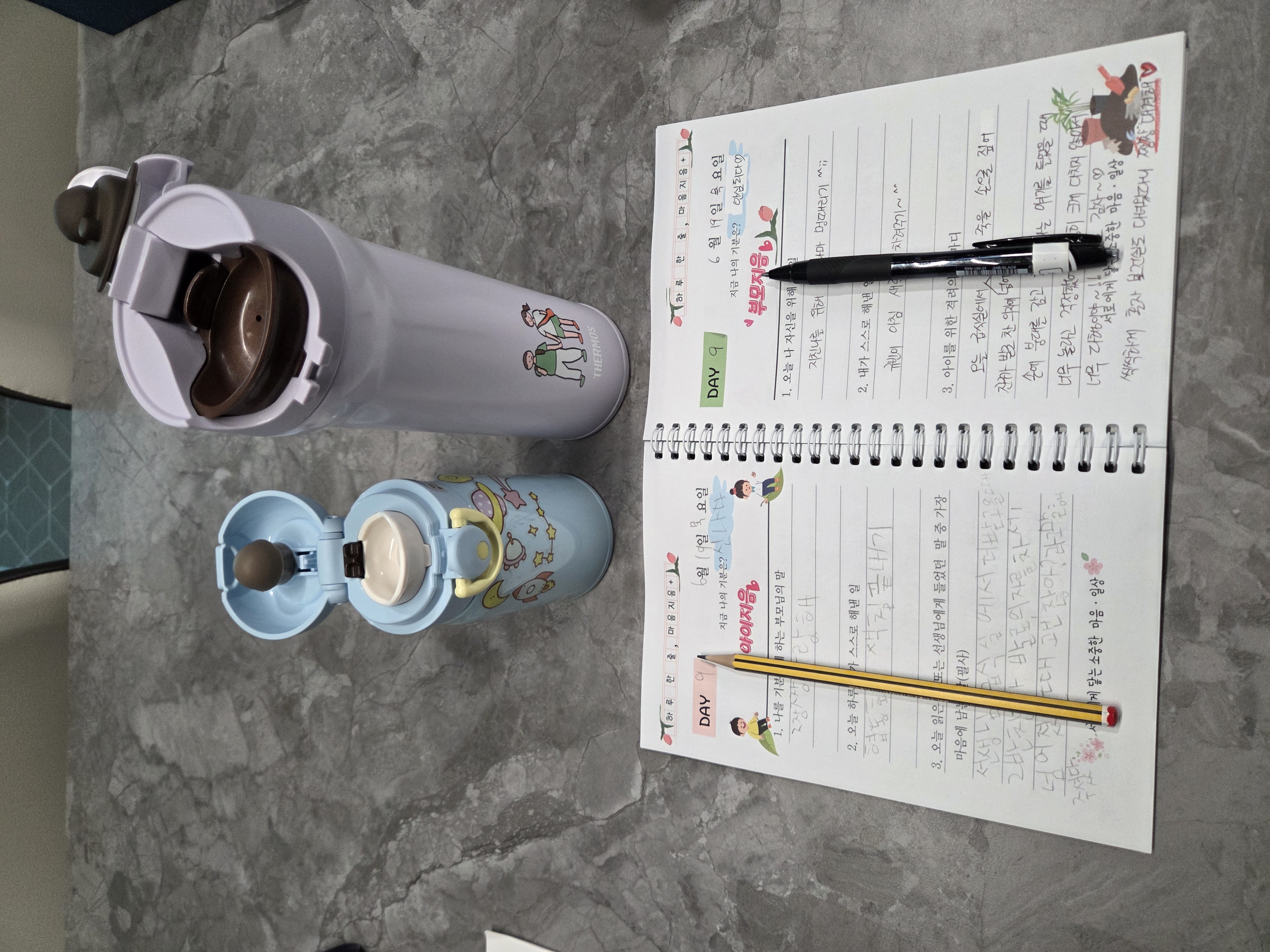 매일 잠들기 전 아이와 함께 텀블러에 따뜻한 차 한잔 담아마시면서 책도 읽고, 하루 한 줄, 아이와 나의 마음을 나누는 교환일기도 써보면서 오늘 하루 있었던 일 이야기 나누기 등을 꼭 해보려고 하고있어요~^^