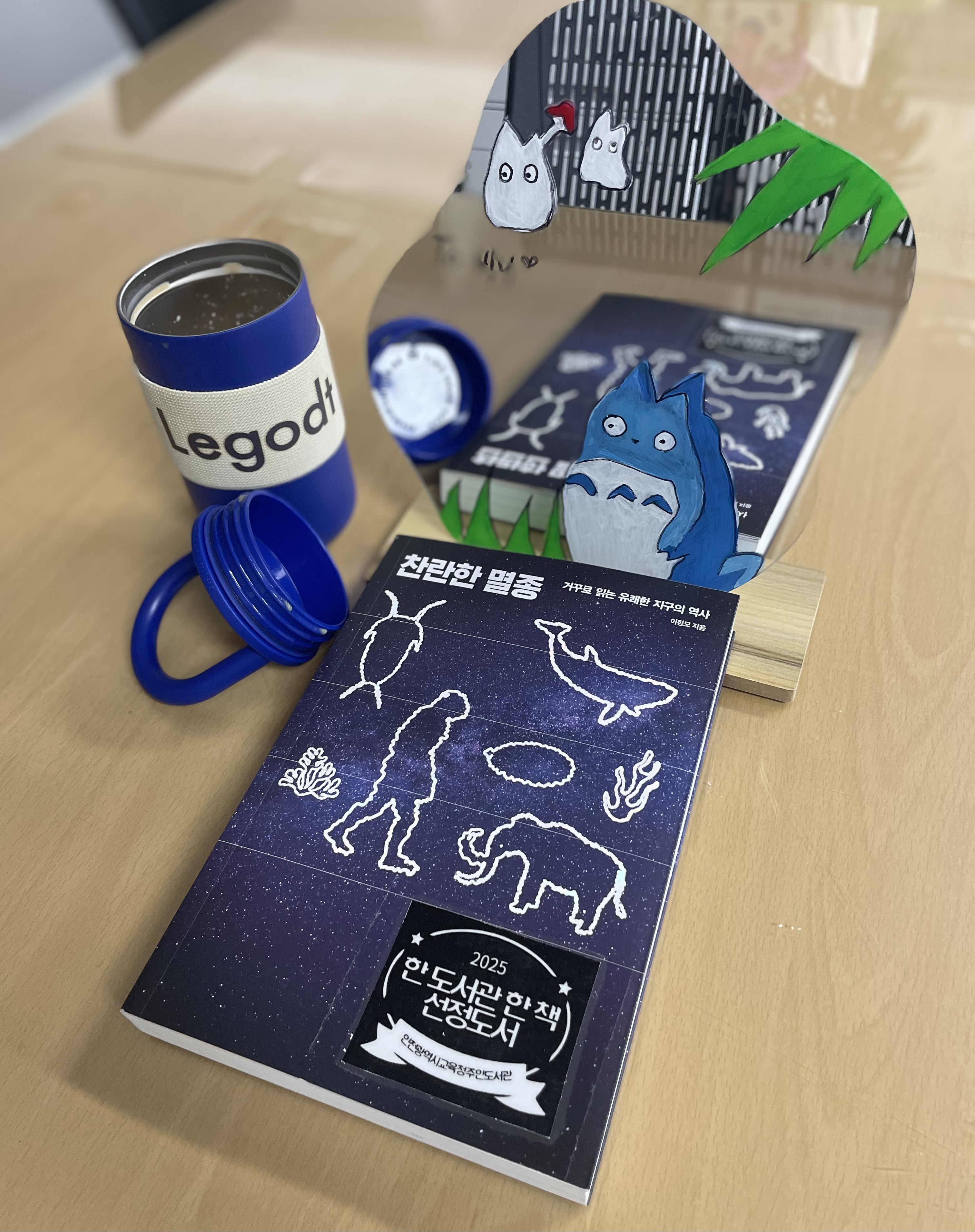 텀블러에 담긴 아이스 커피, 그리고 책과 함께 하는 일상