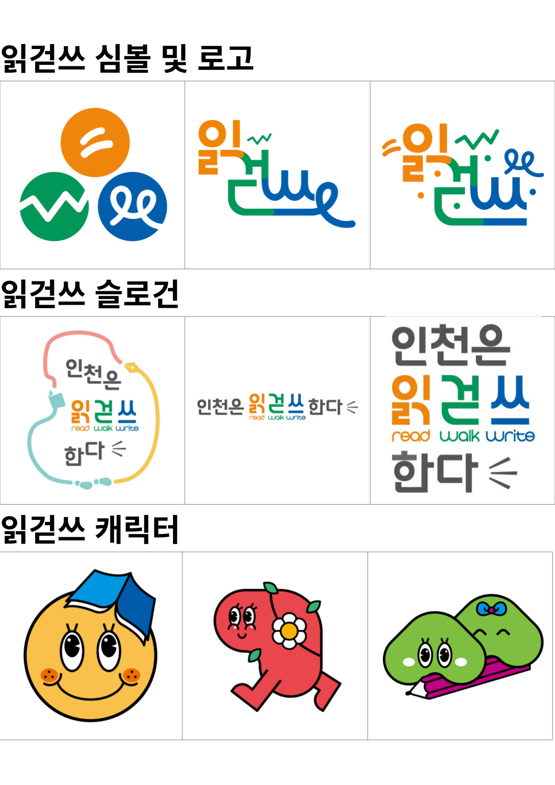 읽걷쓰 로고, 슬로건, 캐릭터 파일을 공유드리오니 활용하시기 바랍니다.