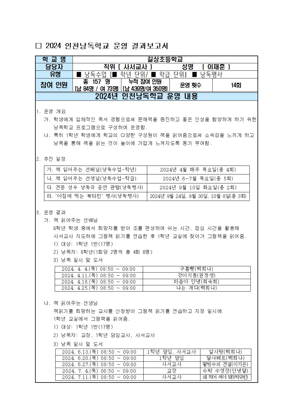 2024 인천낭독학교 운영 결과보고서(길상초등학교)