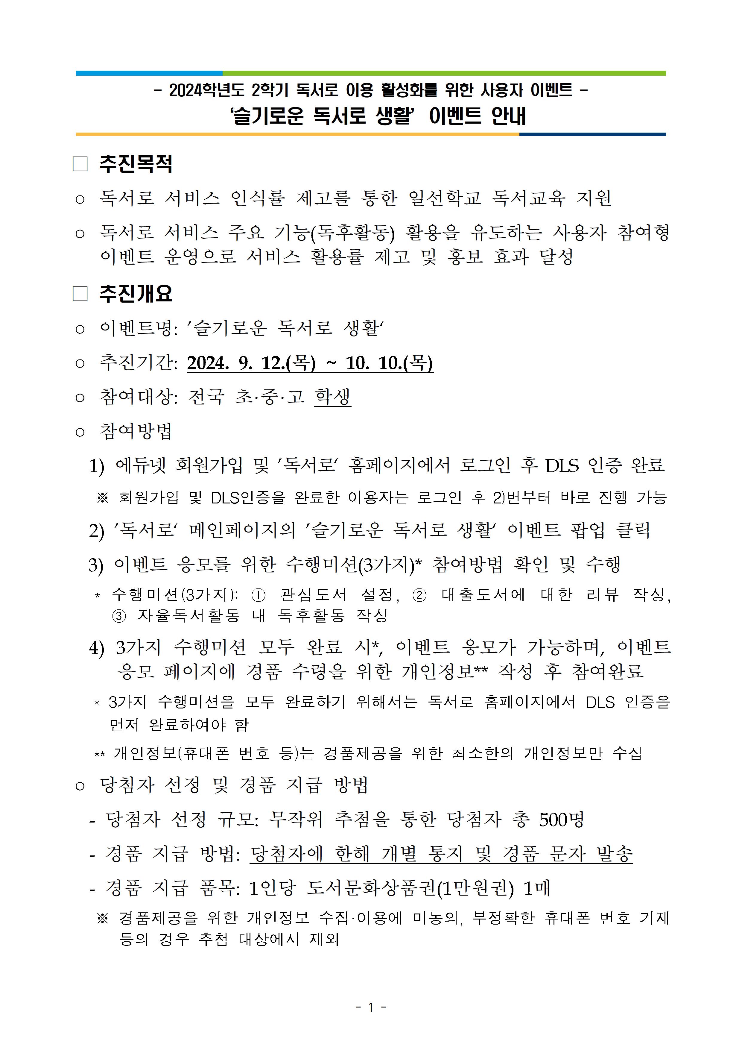 [교육부/KERIS] '슬기로운 독서로 생활' 이벤트 안내 (~2024.10.10.)