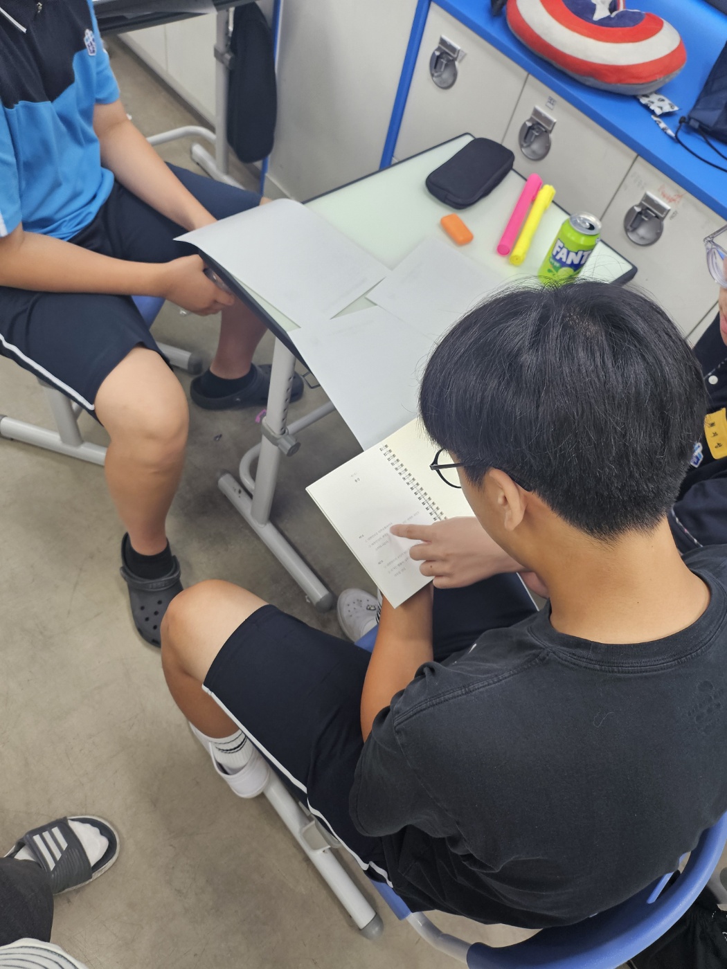 @ 교사 : 학생들에게 실제 수업 중 표현하지 못했던 내용들을 법 조항과 함께 알아보는 시간 자체가 너무 유익했음. 학생들도 실사례와 연관되는 헌법 조항을 직접 찾아보고, 마음에 드는 헌법 조항을 필사해보는 과정에서 헌법이 우리 가까이에서 영향을 주고 있다는 것을 이해하고, 헌법 조항을 스스로 이해하고 배움으로 파악할 수 있는 기회로 삼는 기회가 되었음. 지원받은 10권으로 직접 필사하지 못하고 조별 활동으로 진행되는 과정이라 지원되는 책자가 더 많기를 희망함.