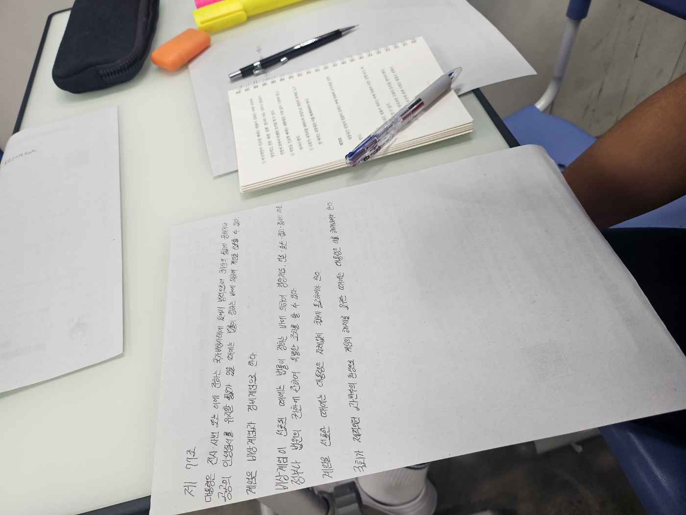 -활동 내용 : 3학년 고사 종료 후 전환 학기(취약시기) 사회 수업 시간을 이용하여 헌법 필사 활동을 진행함.
