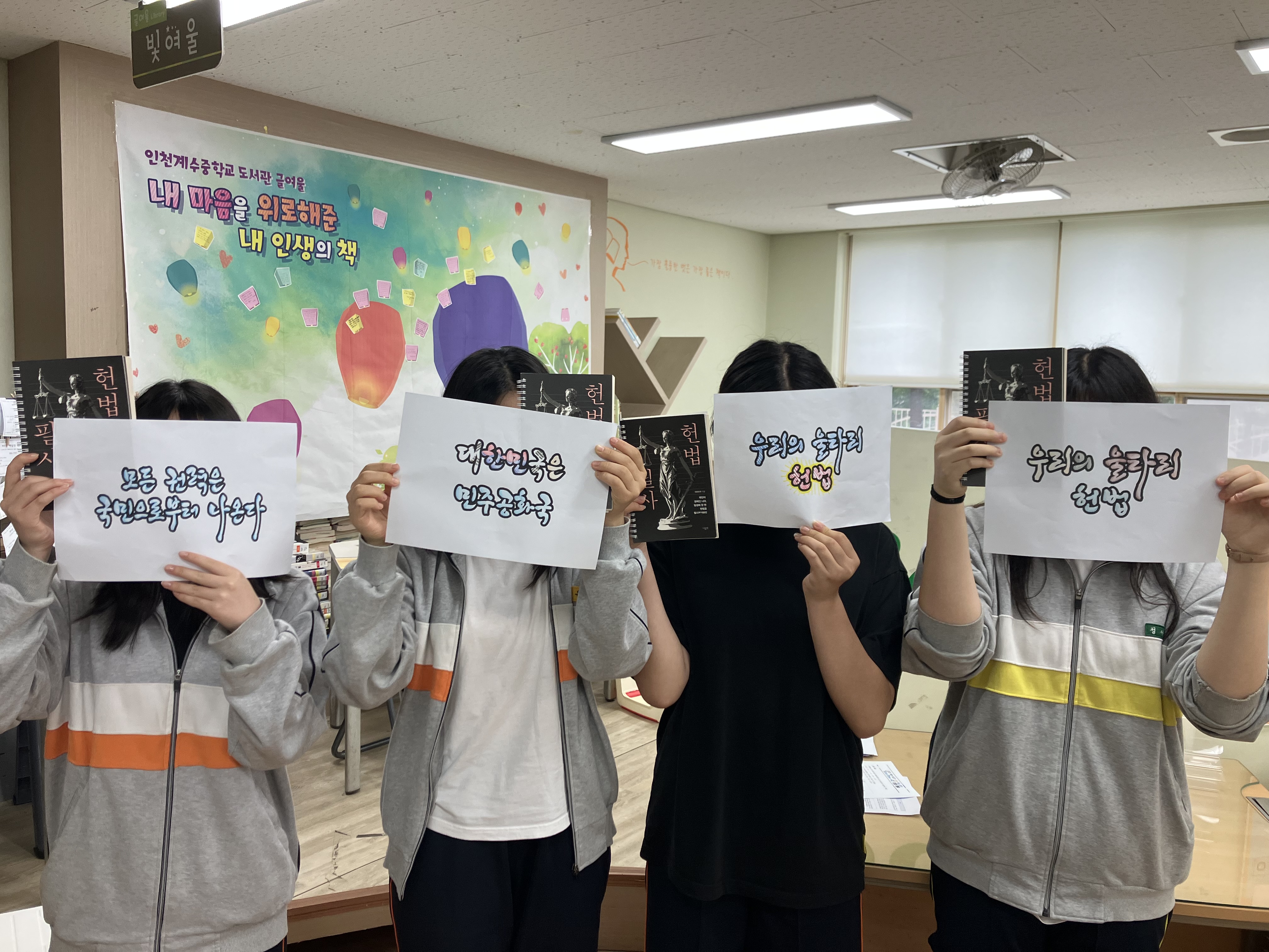 현재 대한민국의 상황과 교과서를 연계하여 헌법의 중요성을 인식 시킬 수 있는 좋은 활동이였습니다. 제헌절에 맞춰 활동을 한 점도 좋았습니다. 필사 책을 1인 1권으로 활동하여 많은 학생이 참여하지 못한 점이 아쉬웠고 다음에 기회가 된다면 다수의 학생이 1권의 필사책을 활용해도 좋겠다는 생각을 했습니다. 내년에도 참여하겠습니다. 감사합니다.