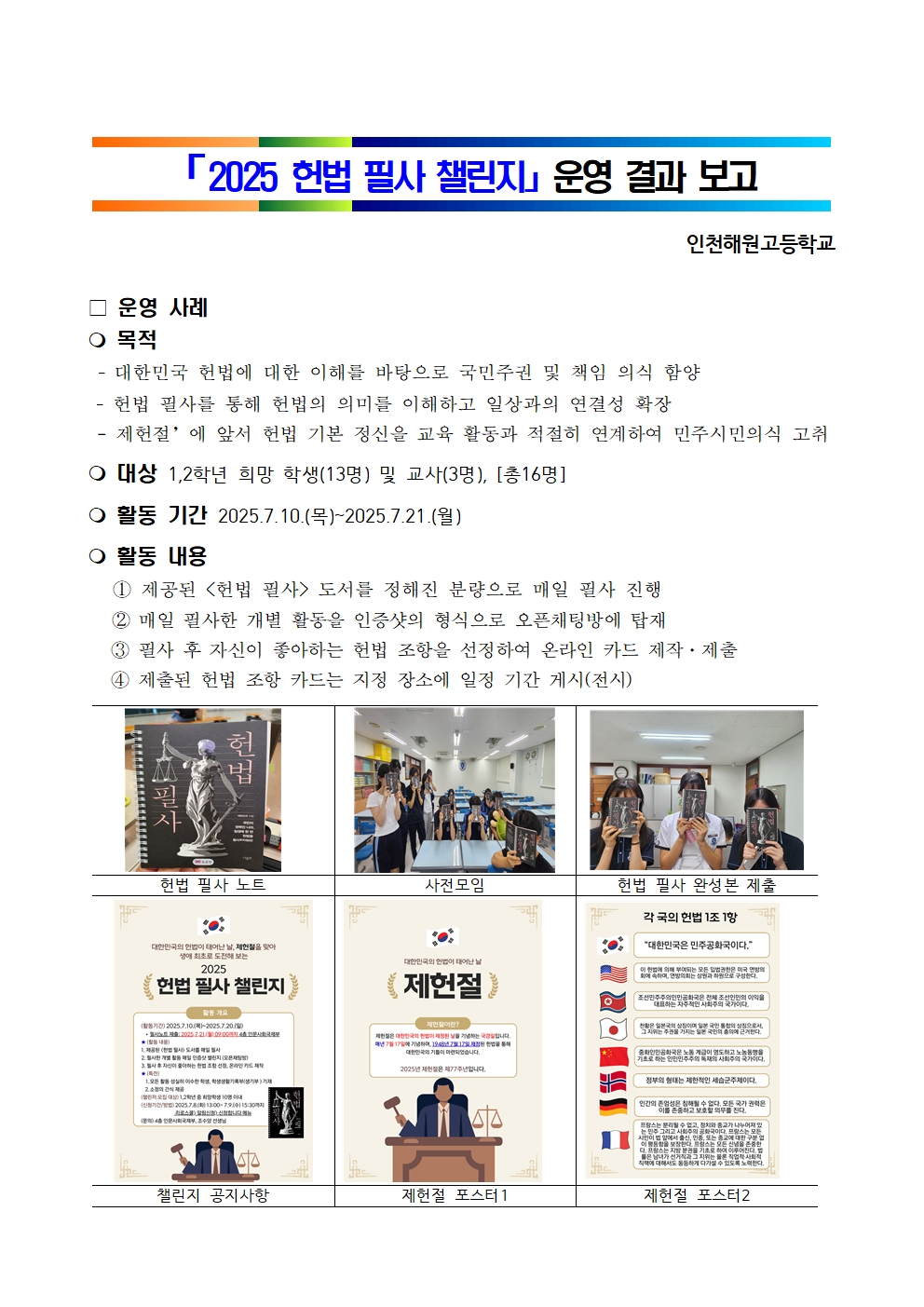 인천해원고등학교 - 2025 헌법 필사 챌린지