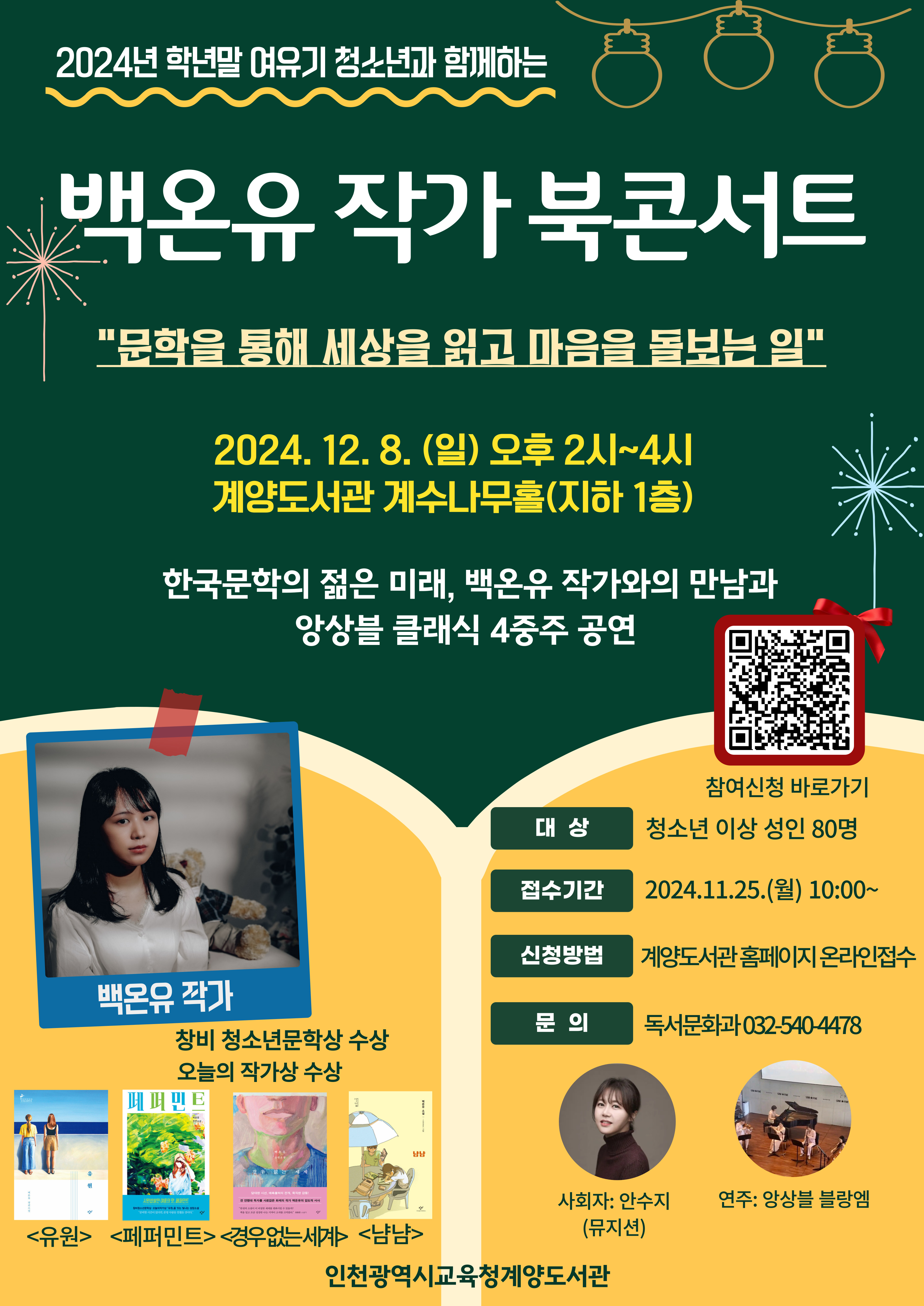 [계양도서관] 2024년 학년말 여유기 청소년과 함께하는「백온유 작가 북콘서트」