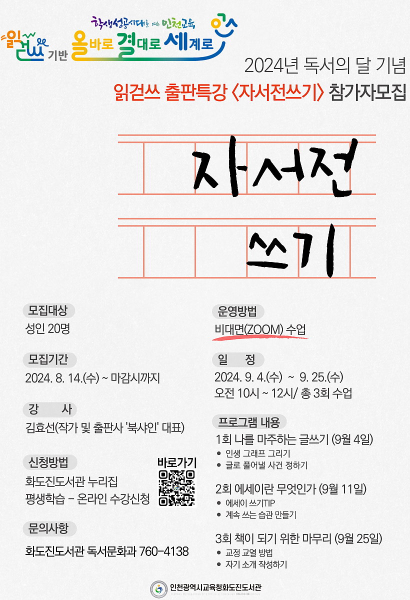 [화도진도서관]읽걷쓰 출판특강 「자서전쓰기」