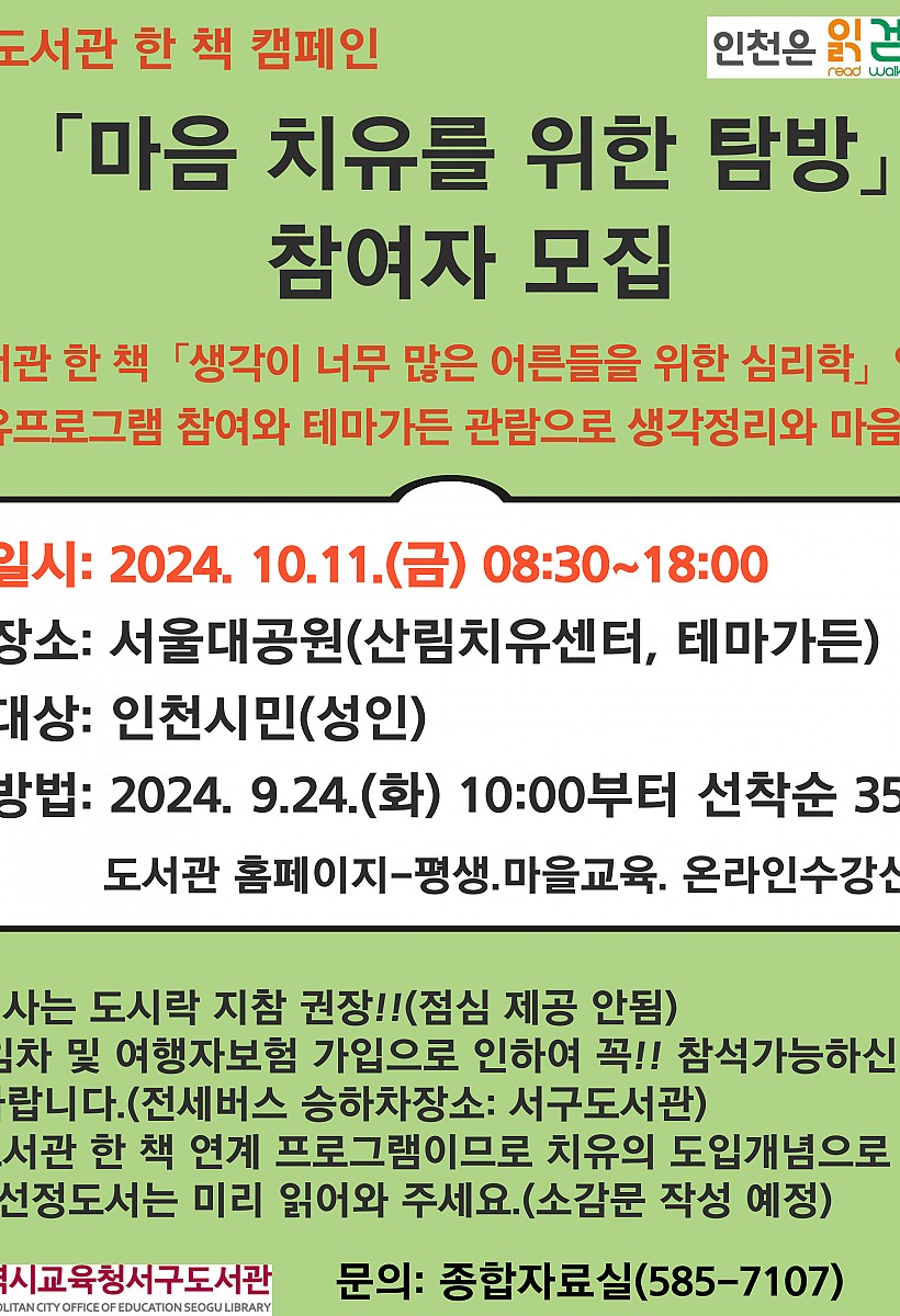 [서구도서관]2024 서구도서관 한 책 「마음 치유를 …
