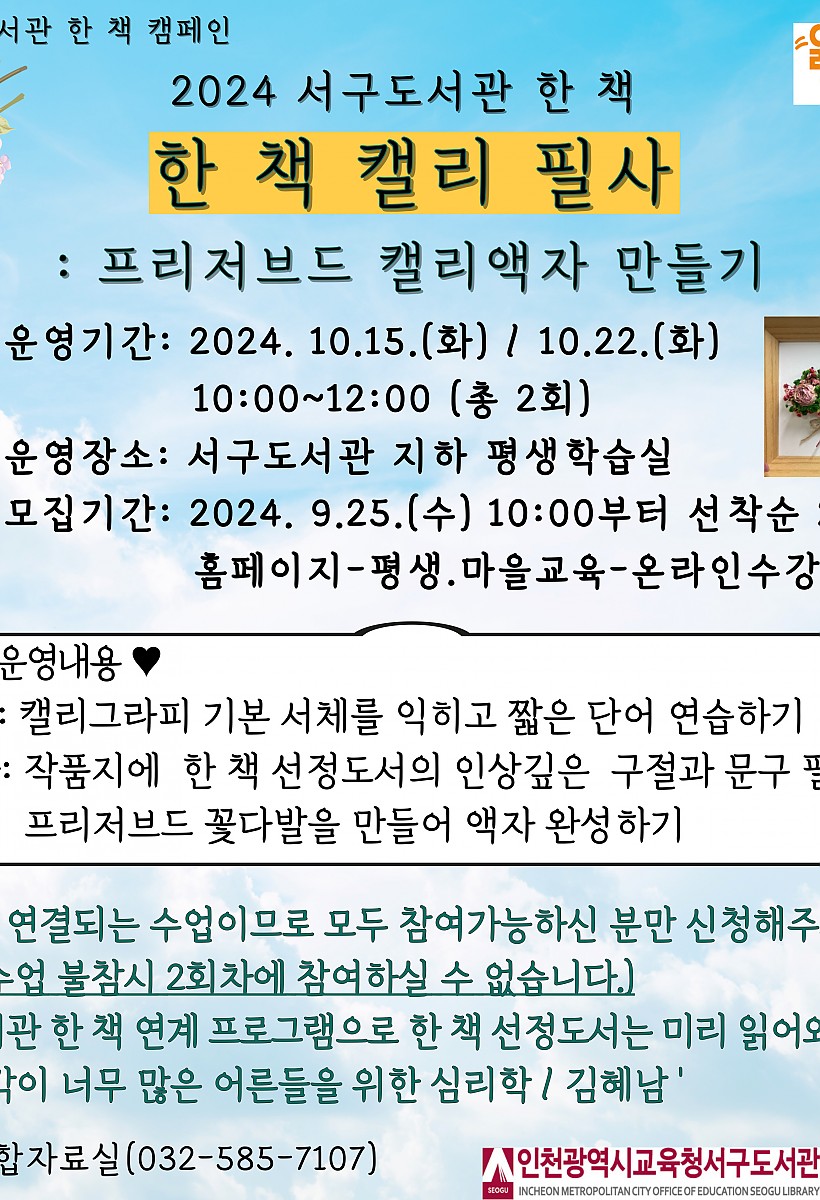 [서구도서관] 2024 서구도서관 한 책 「한 책 캘리…