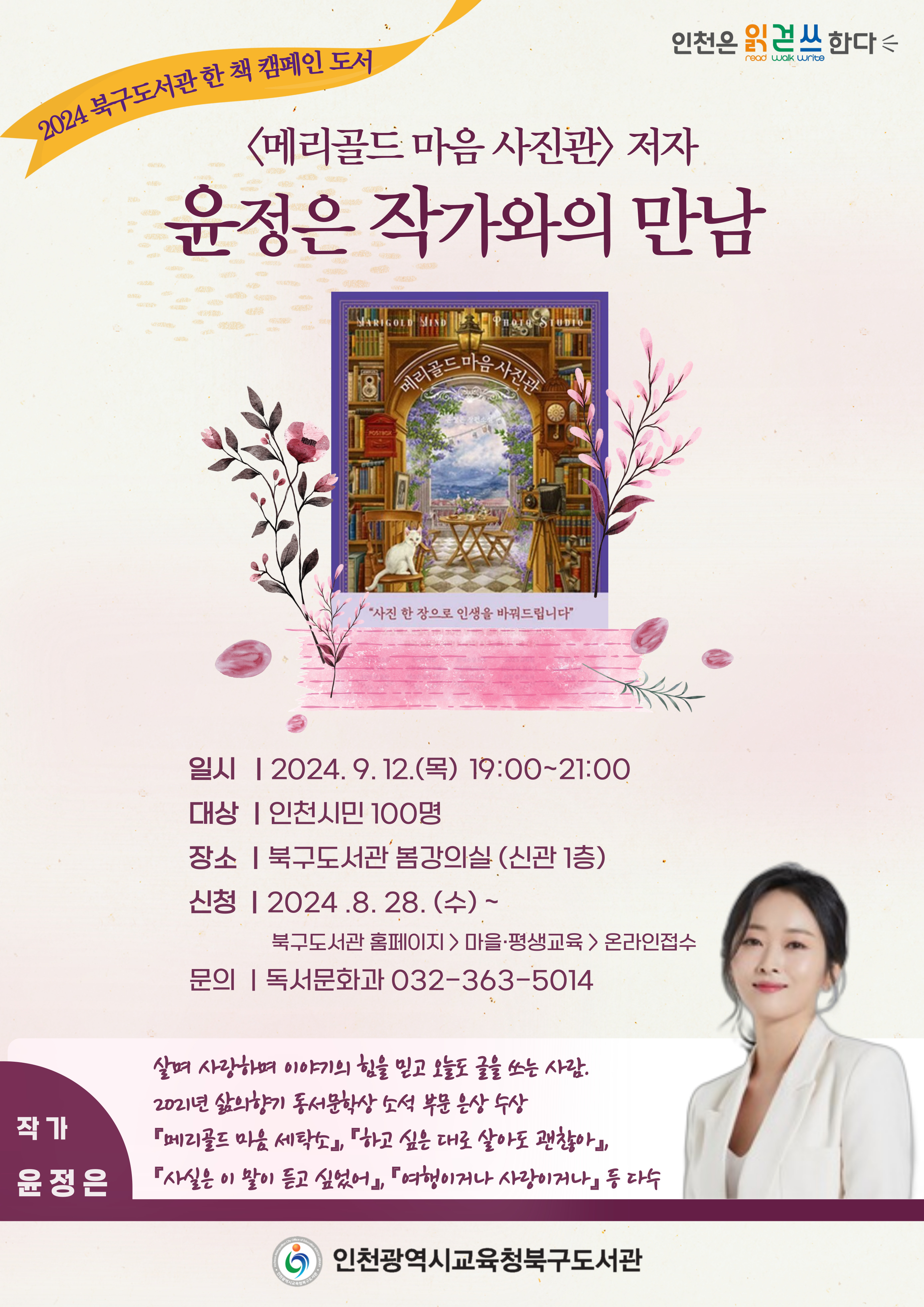 2024 북구도서관 한 책, <메리골드 마음 사진관>의 저자 윤정은 작가와의 만남이 운영됩니다!