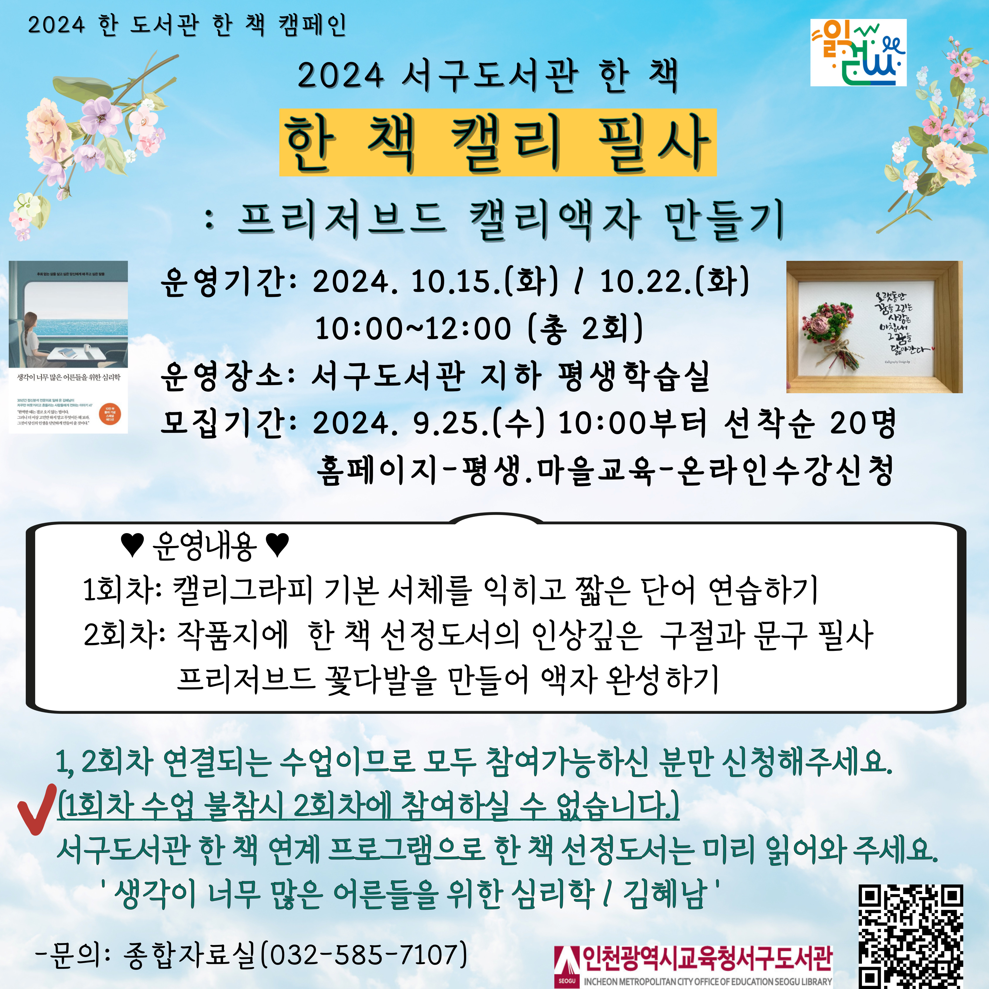 [서구도서관] 2024 서구도서관 한 책 「한 책 캘리 필사」