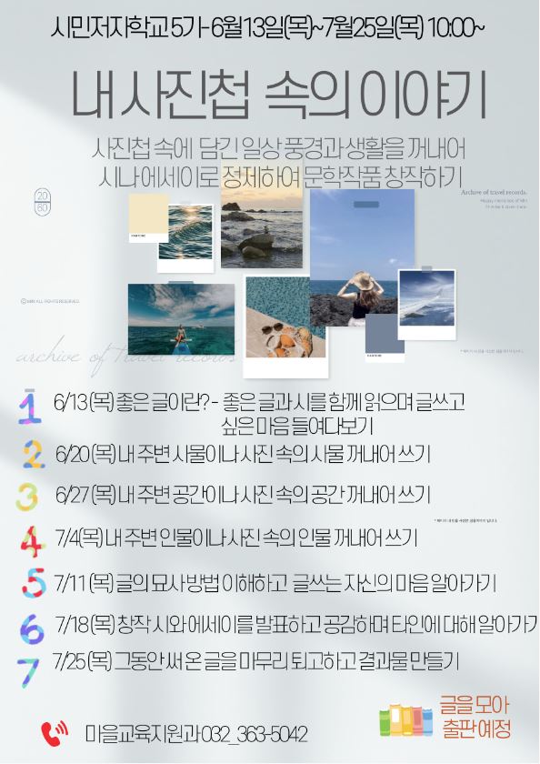 북구도서관 시민저자학교 5기, 내 사진첩 속의 이야기에서는 각 개인의 사진첩 속에 담긴 일상의 풍경과 생활을 꺼내어 시나 에세이로 정제하여 문학적이고 예술적인 작품을 창작합니다.