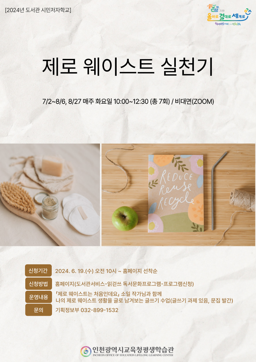 - 「제로 웨이스트는 처음인데요」, 「윤리적 최소주의자, 지구에 삽니다」 소일 작가님과 함께하는 글쓰기 수업입니다.