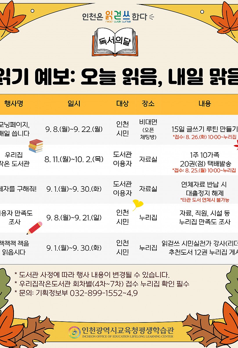 [인천광역시교육청공공도서관] 9월 독서의 달 행사 안내