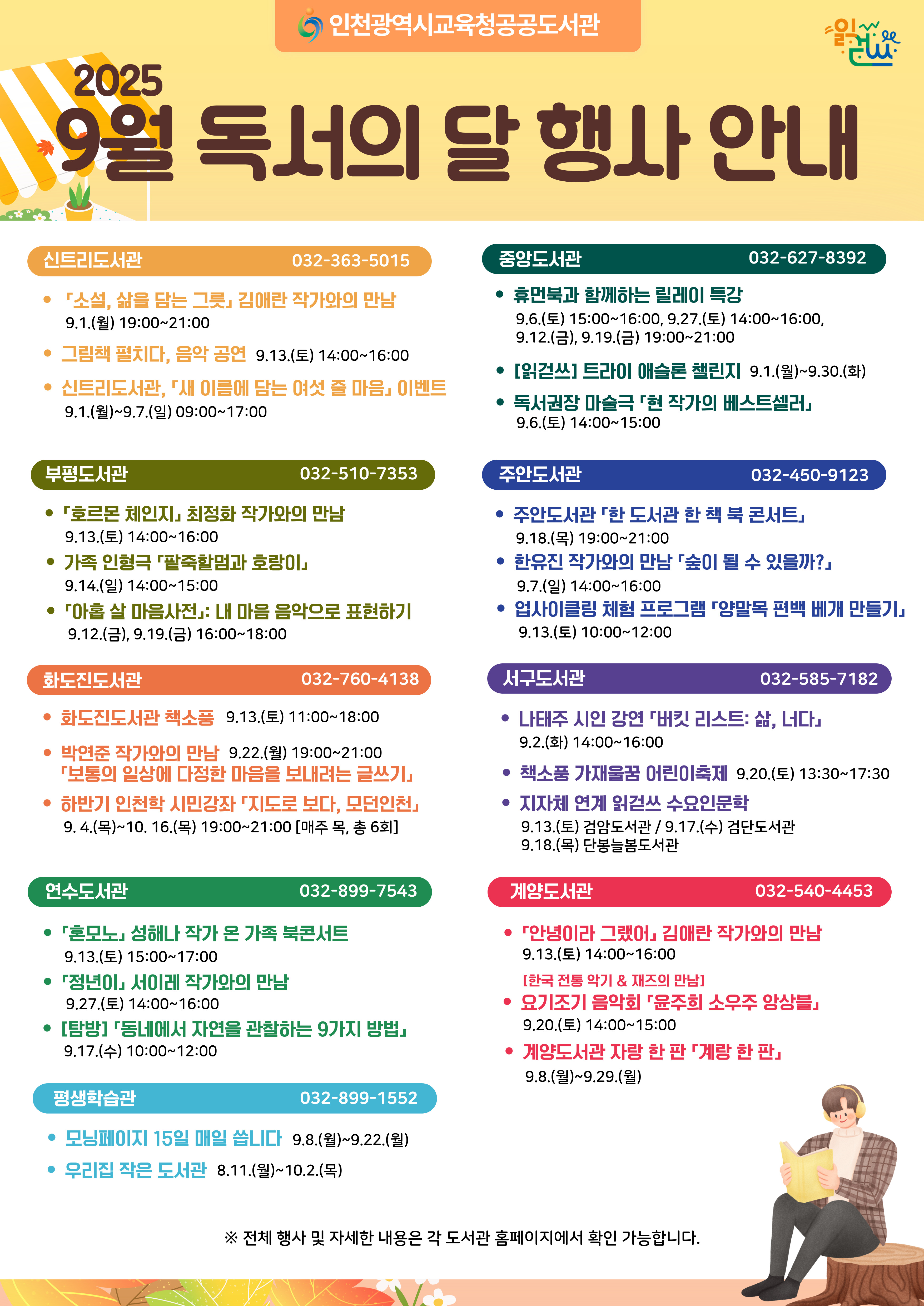 인천광역시교육청공공도서관에서는 2025년 9월 독서의 달을 맞이하여 다양한 독서문화행사를 운영합니다.