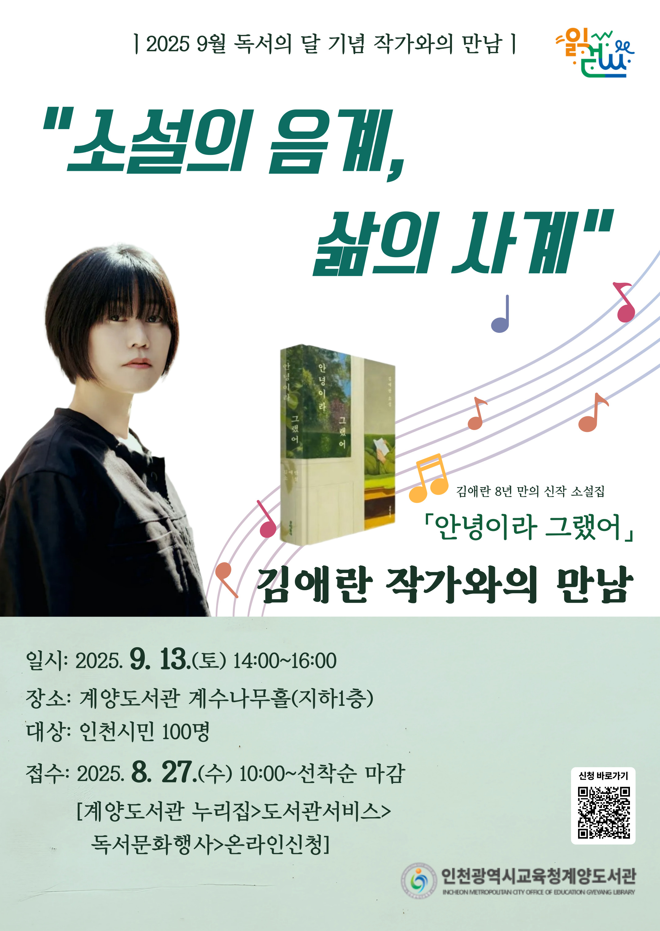 계양도서관에서는 9월 독서의 달을 맞아 김애란 작가와의 만남을 운영합니다.