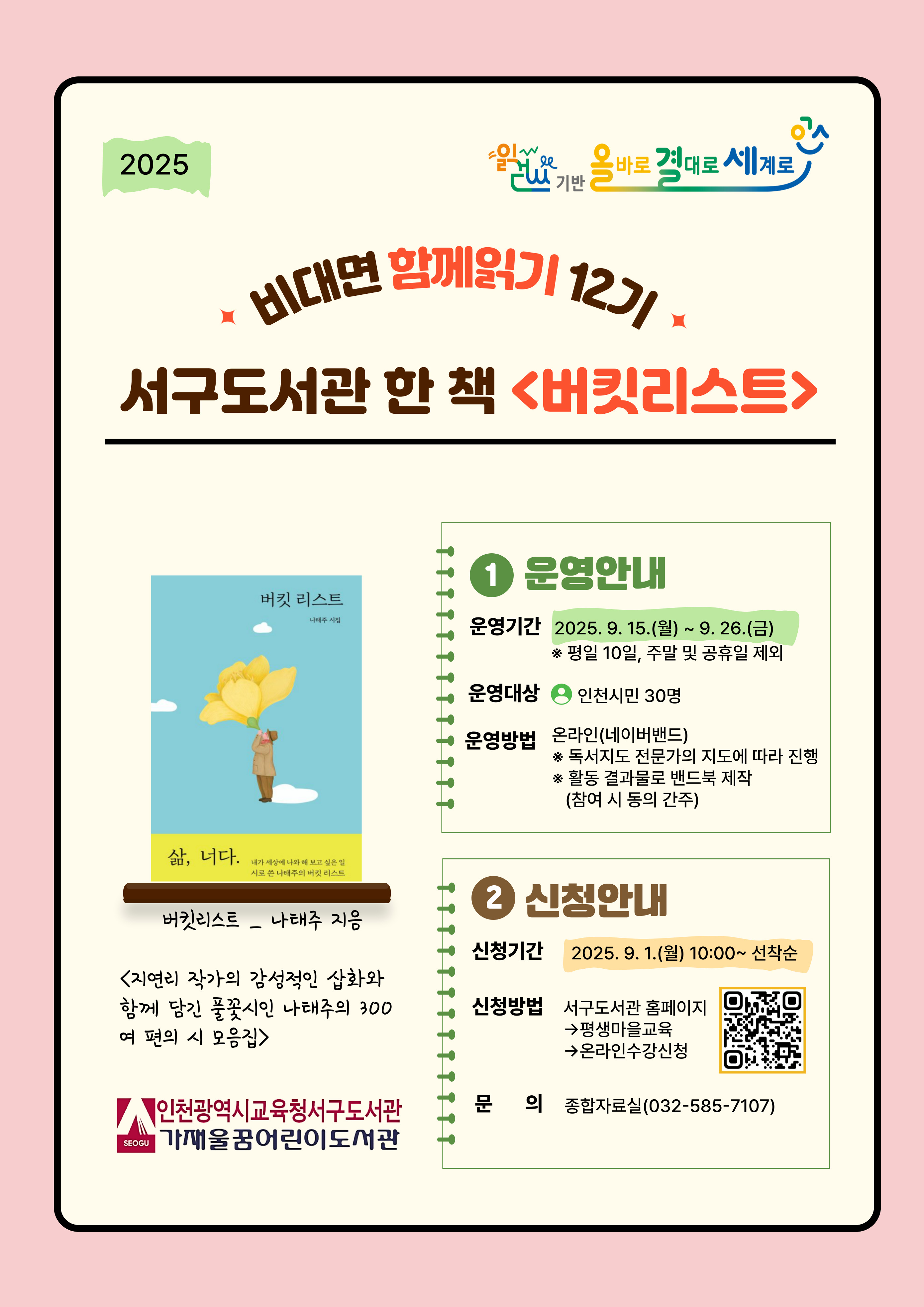 ❍ 사업명: 2025년 비대면 함께읽기 12기 ‘서구도서관 한 책 <버킷리스트>’