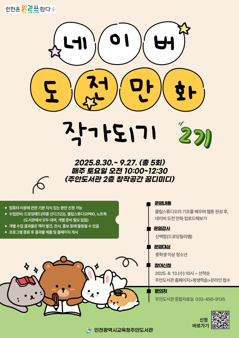 [주안도서관] 2025년 하반기 스마트창의교실-네이버 도전만화 작가되기 2기