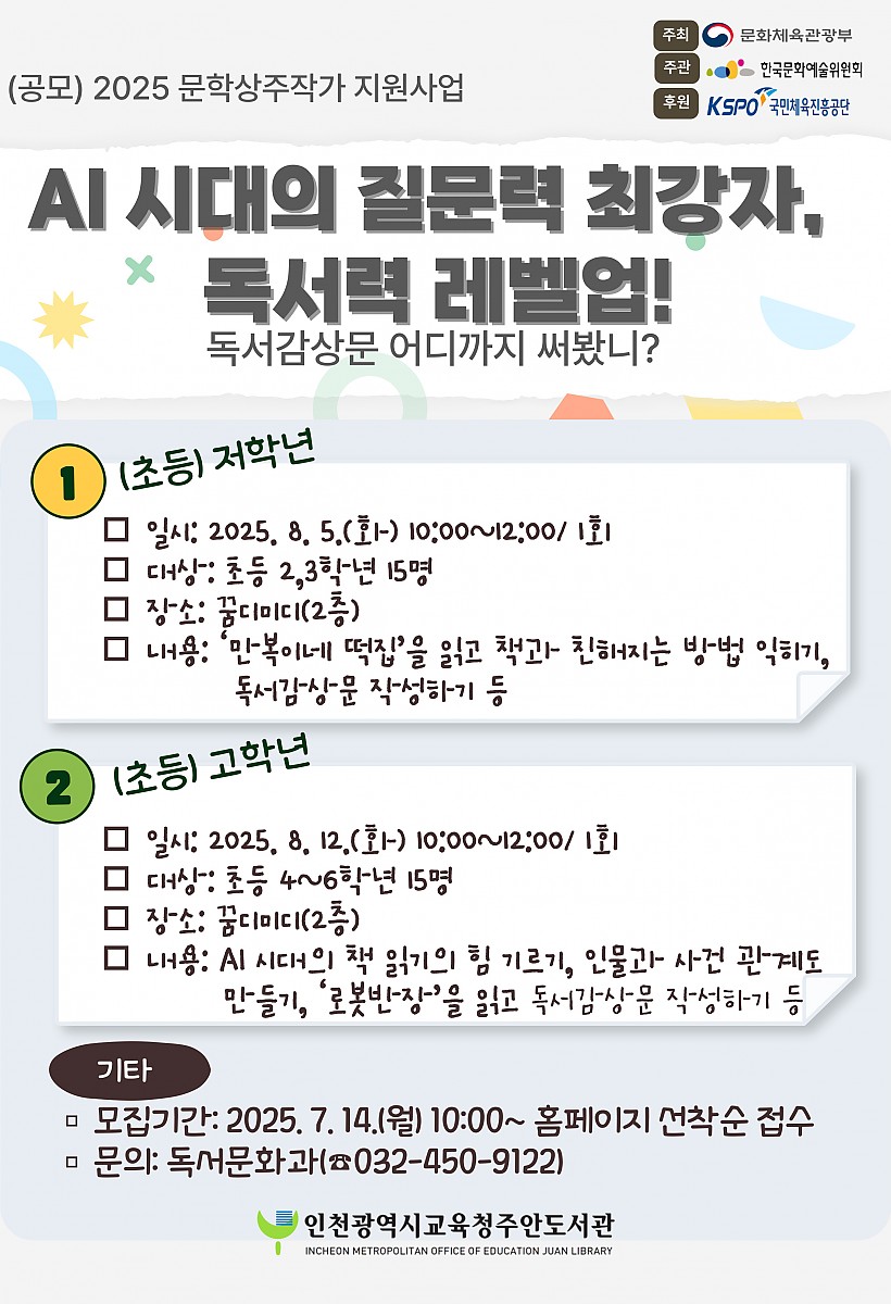 (주안도서관: 문학상주작가 지원사업) AI시대의 질문력…