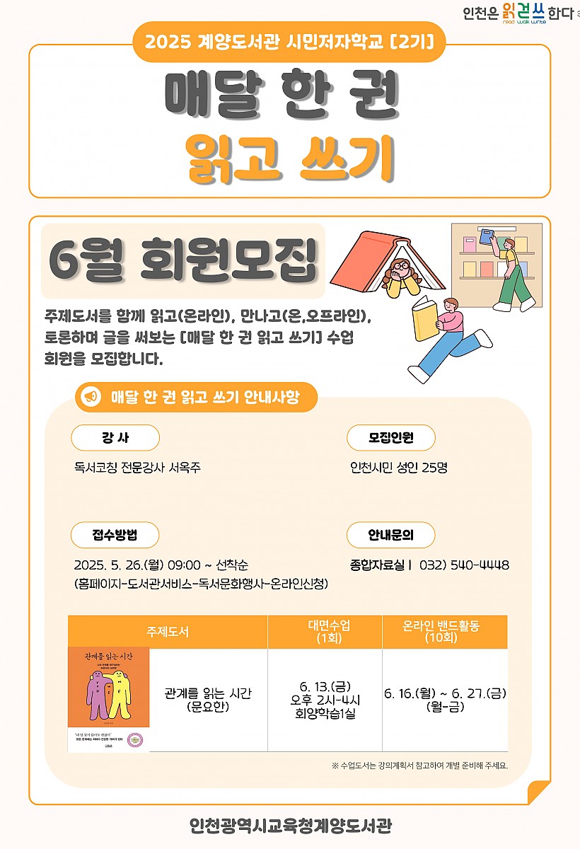 2025 계양도서관 시민저자학교 2기, 매달 한 권 읽…