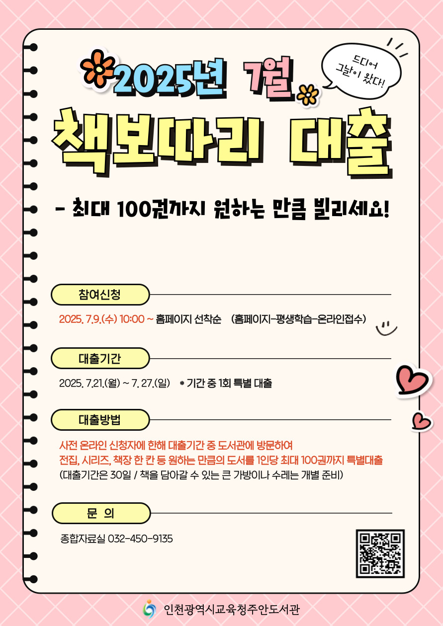 - 대출기간: 2025. 7. 21.(월) ~ 7. 27.(일) * 기간 중 1회 특별 대출