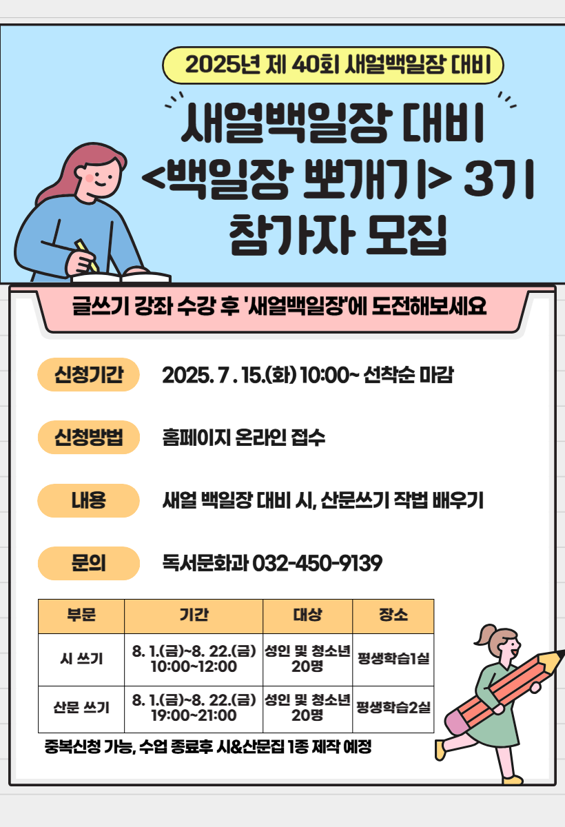 강의 종료 후 시&산문집 1종 출간 예정이며, 중복 신청 가능합니다.