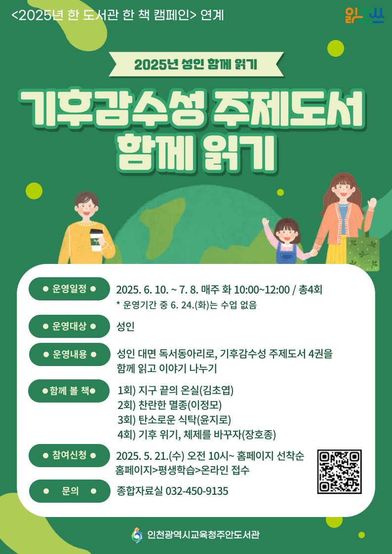 [주안도서관] 성인 함께 읽기-기후감수성 주제도서 함께 읽기