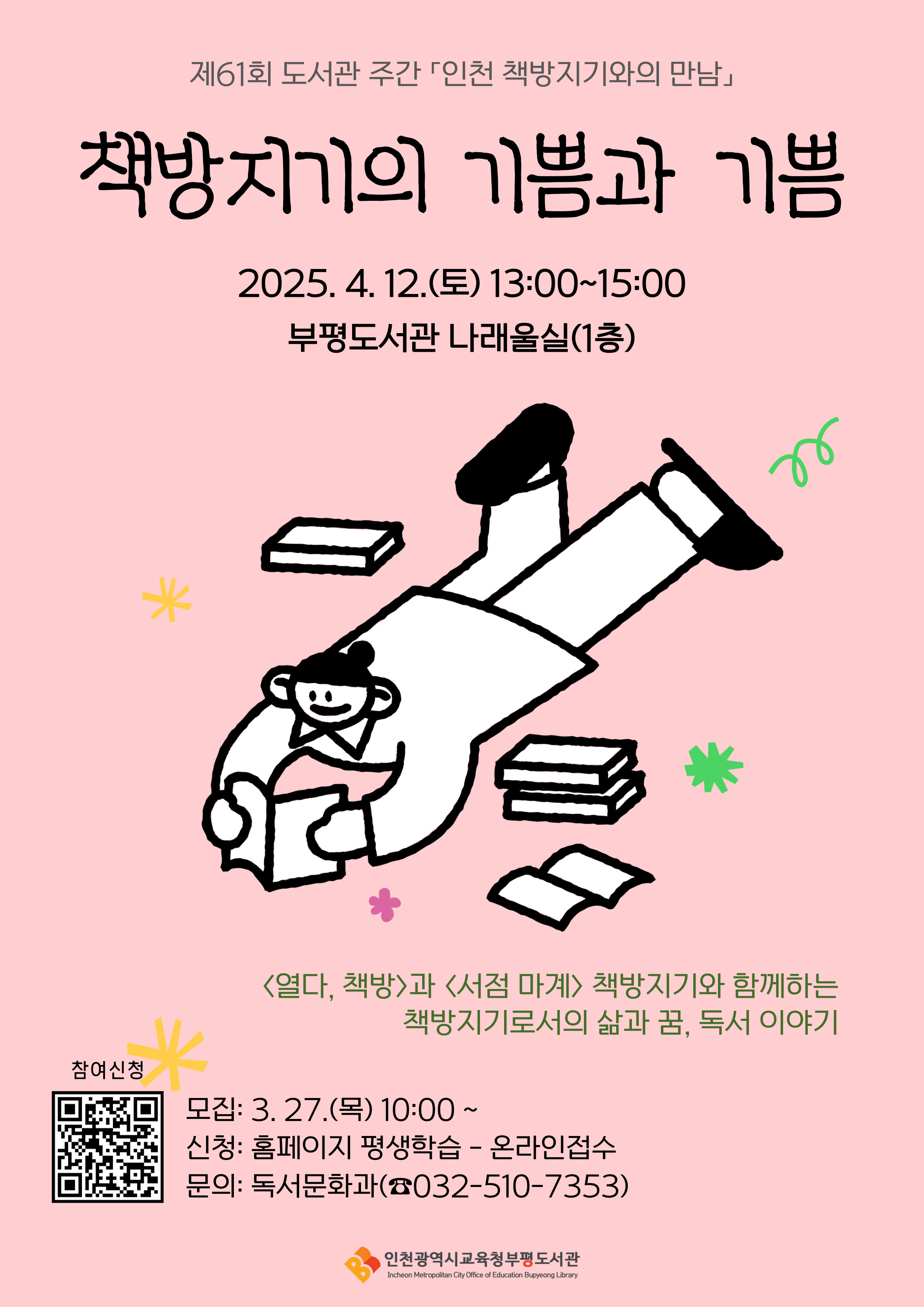 인천 책방지기 2인(열다책방, 서점마계)이 들려주는 책방지기로서의 삶과 책방이 운영되는 방식, 독서 이야기입니다.