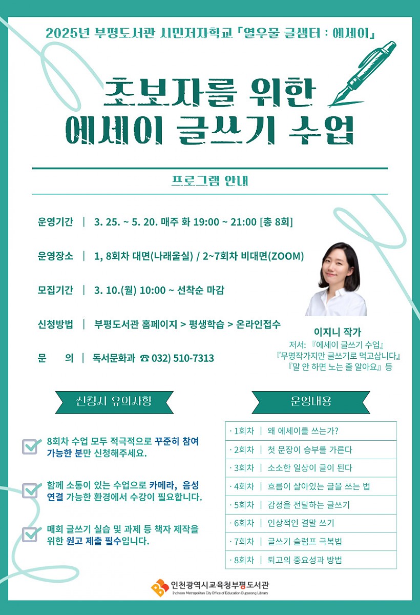 [부평도서관] 시민저자학교 「초보자를 위한 에세이 글쓰…