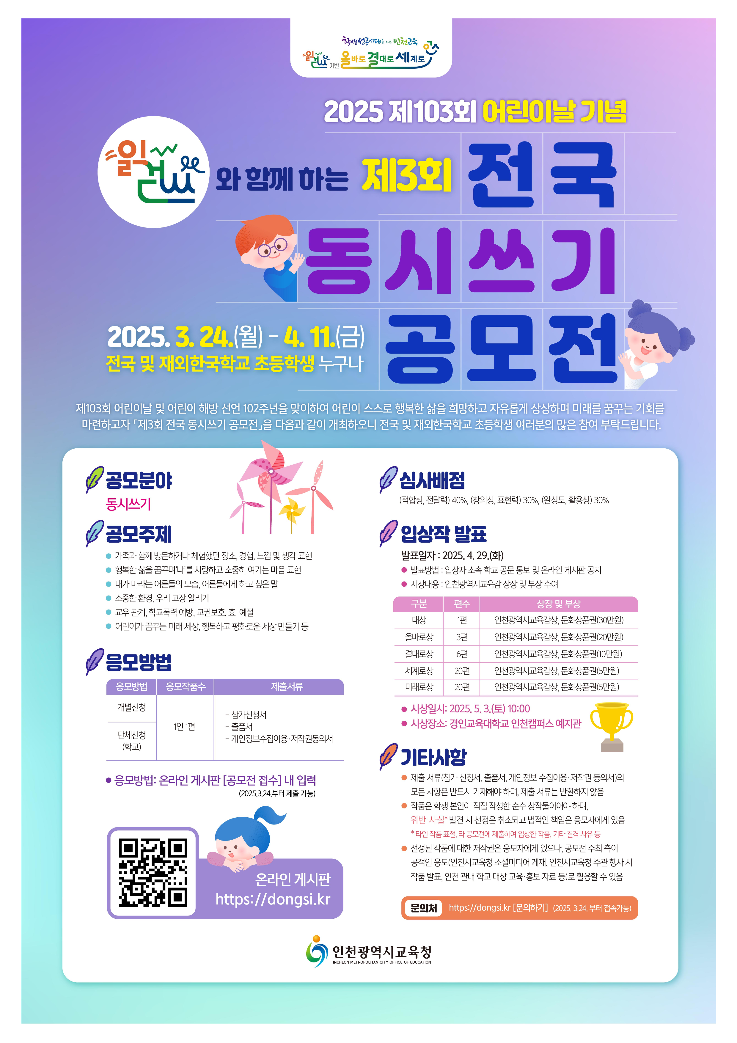 제103회 어린이날 기념「전국 동시쓰기 공모전」