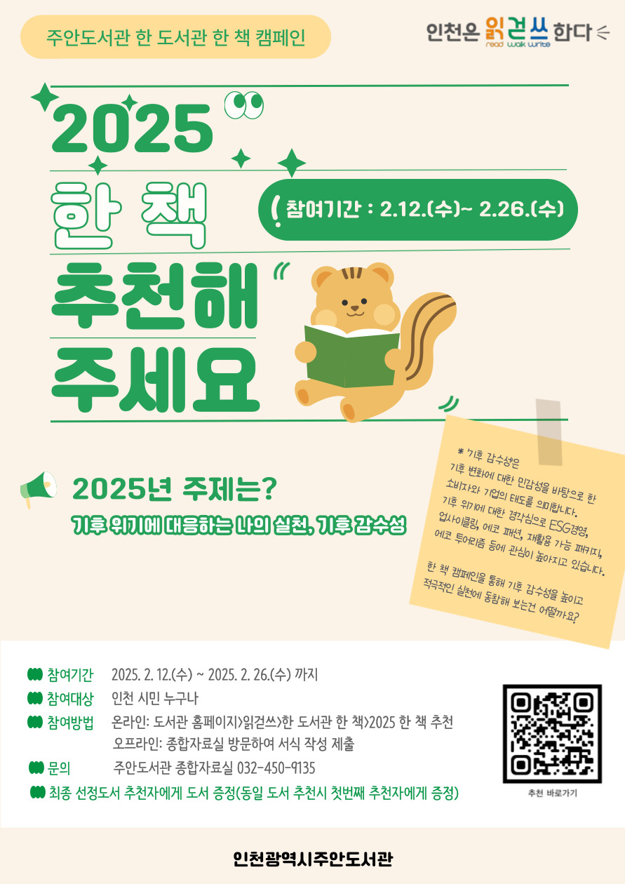 주안도서관, 2025년 한 도서관 한 책 캠페인-한 책 추천