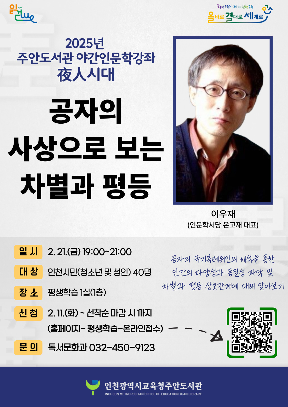 [주안도서관] 2월 야간 인문학 강좌 「공자의 사상으로 보는 차별과 평등」