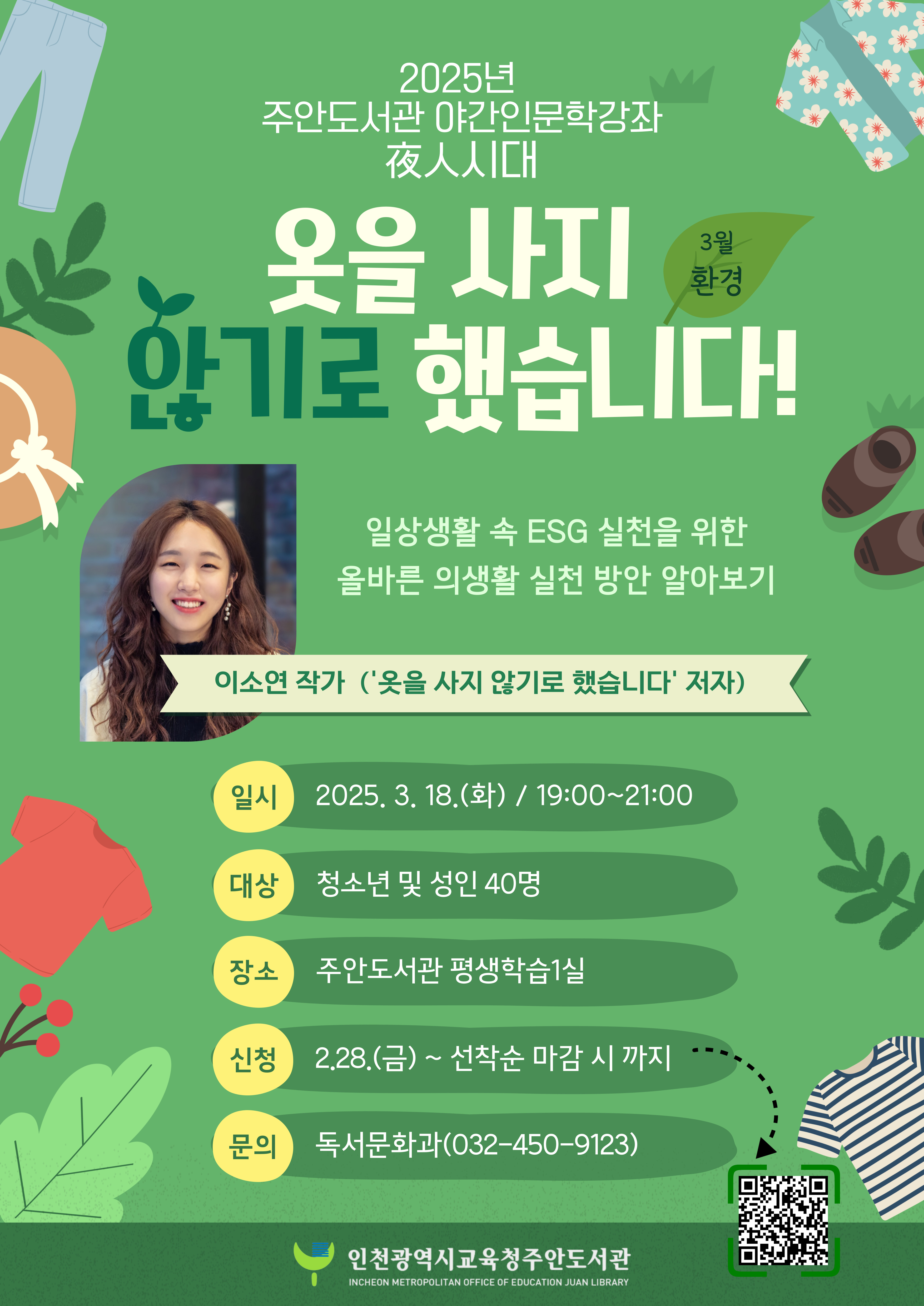 [주안도서관] 3월 야간 인문학 강좌 「옷을 사지 않기로 했습니다!」운영 안내