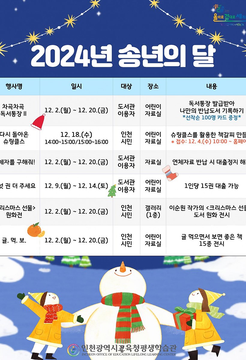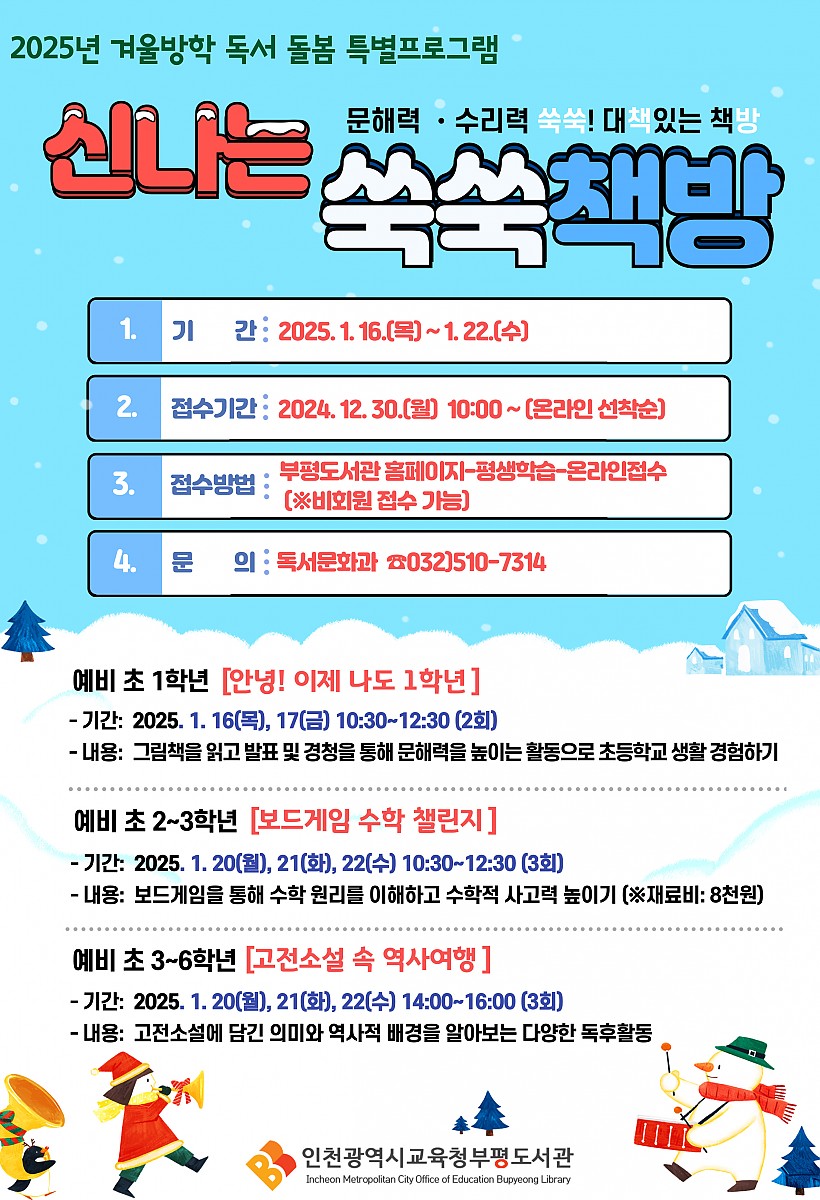 [부평도서관] 2025년 겨울방학 독서돌봄 특별프로그램…