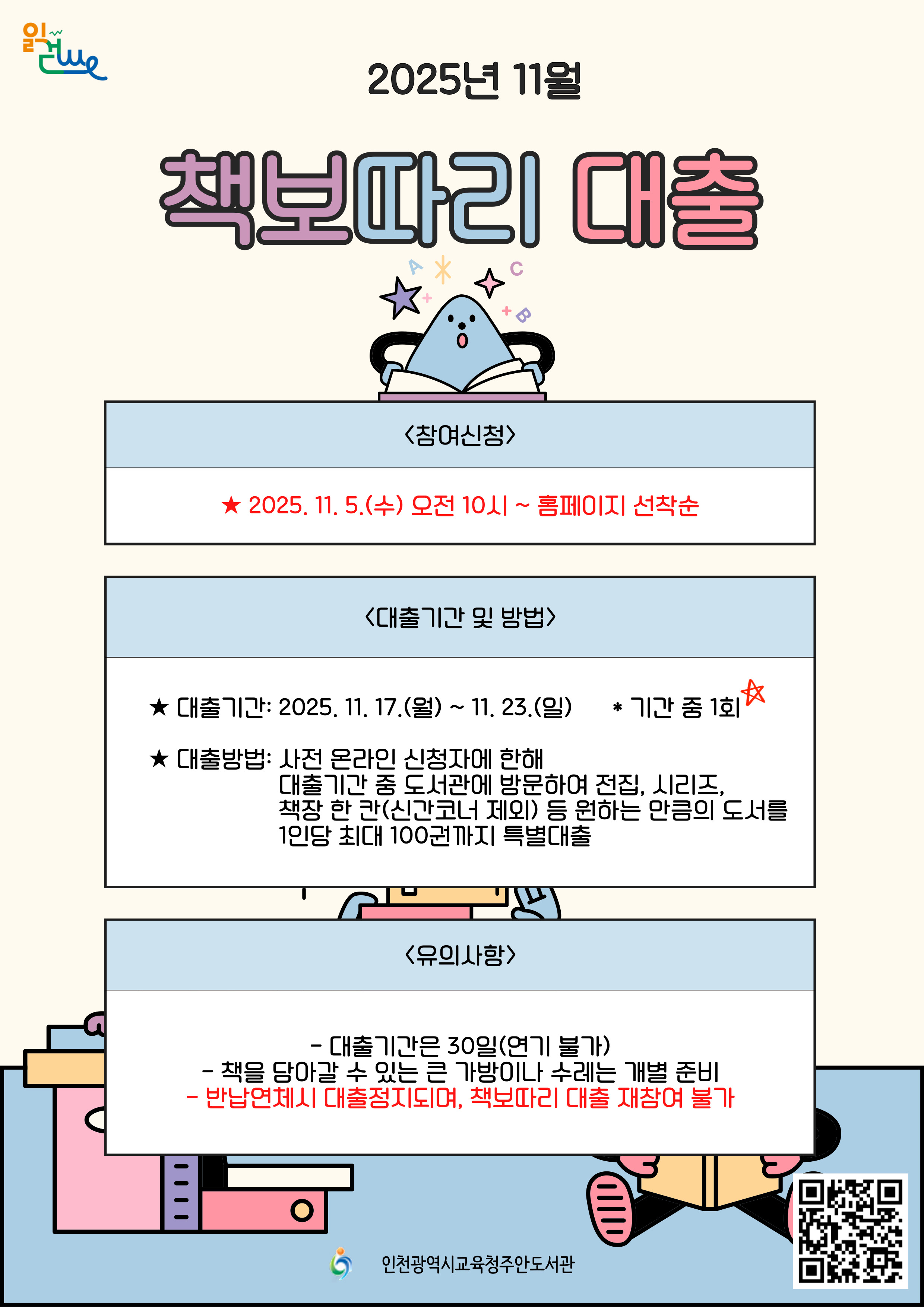 - 대출기간: 2025. 11. 17.(월) ~ 11. 23.(일) * 기간 중 1회 특별 대출