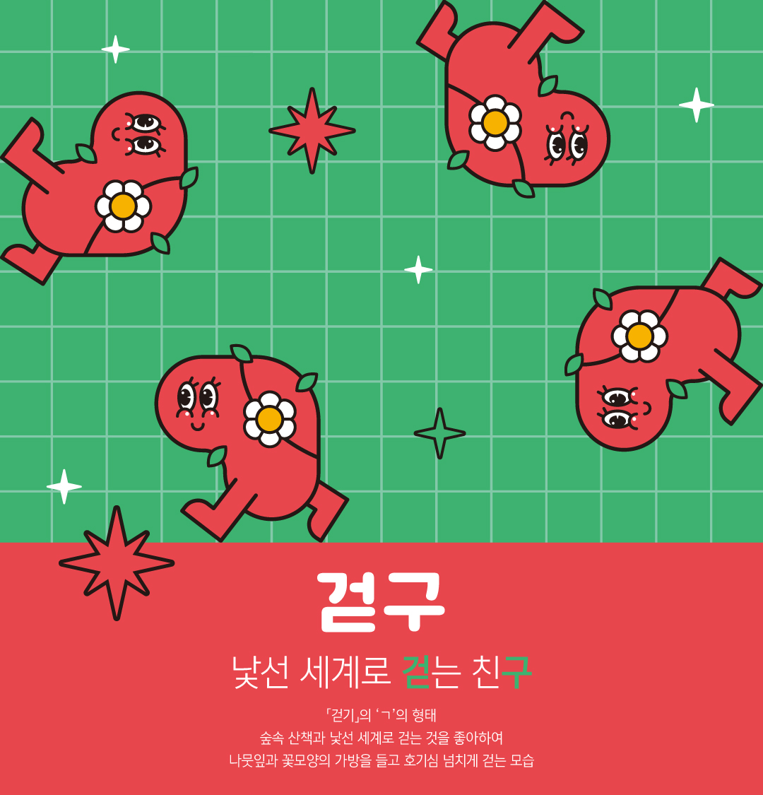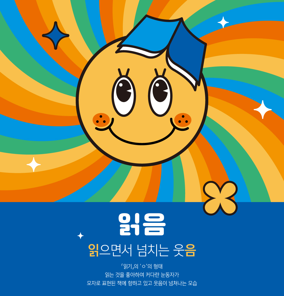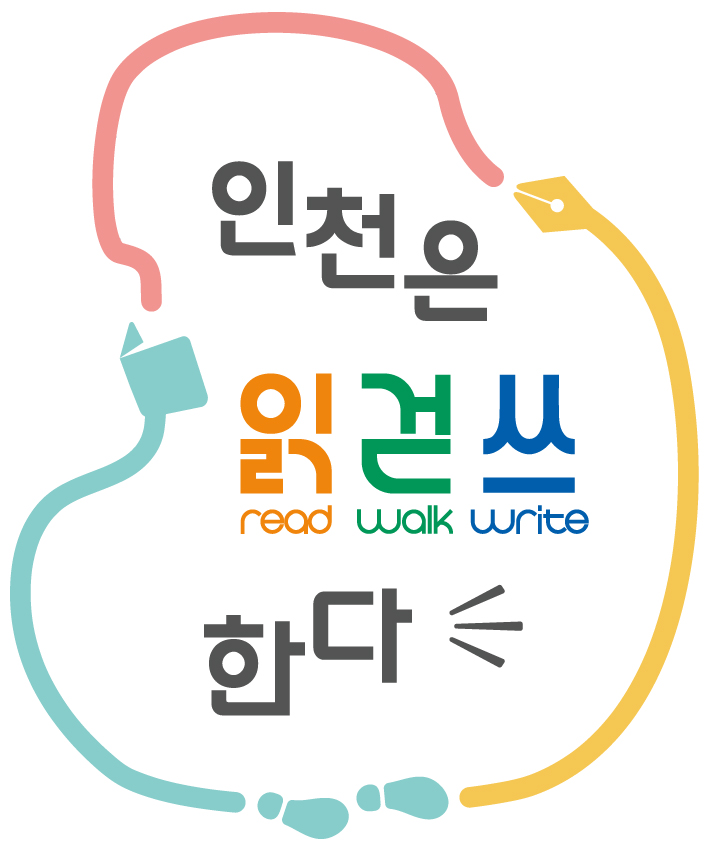 국문 로고타입 '읽걷쓰'와 영문 로고타입 'ReadWalkWrite'를 동일한 라인에 배치하여 국제적인 커뮤니케이션에서도 통일감을 주는 동시에,