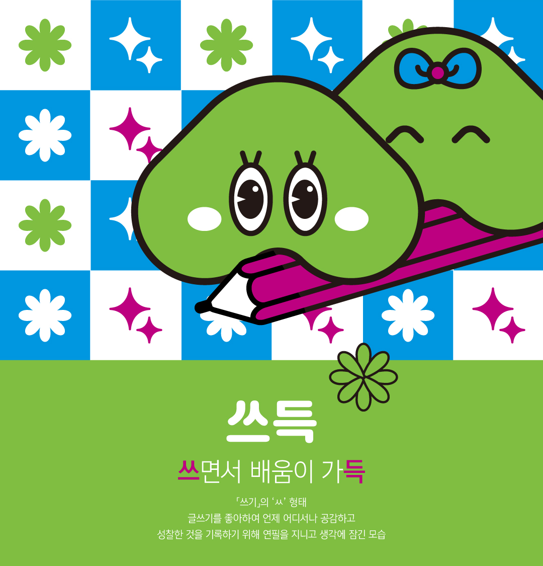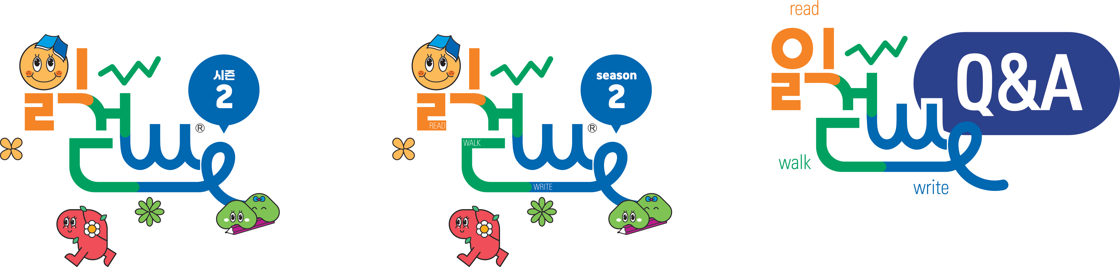 "읽걷쓰" 로고는 국문과 영문 버전으로 가로 형태로 조합되어 다용도로 사용될 수 있습니다.